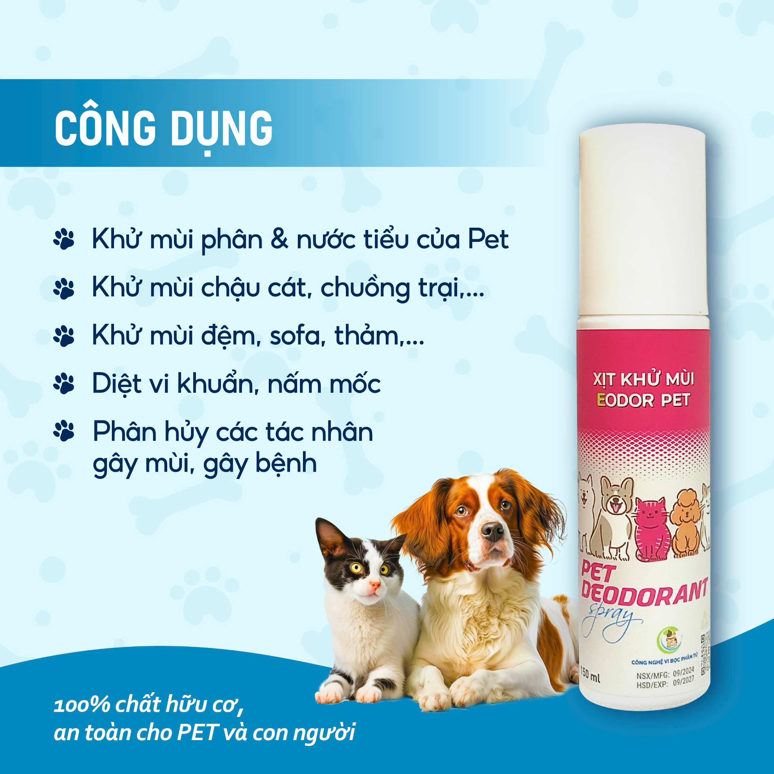 ✨Khử mùi hôi thú cưng cao cấp Eodor Pet 150ml. Công nghệ vi bọc phân tử đến từ Hoa Kỳ