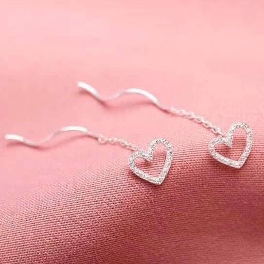 Khuyên tai bạc tim thả xích đơn giản. Đôi khuyên mang phong cách Hàn Quốc thời trang, nữ tính nhưng thực sự là mẫu dành cho những cô nàng trendy.