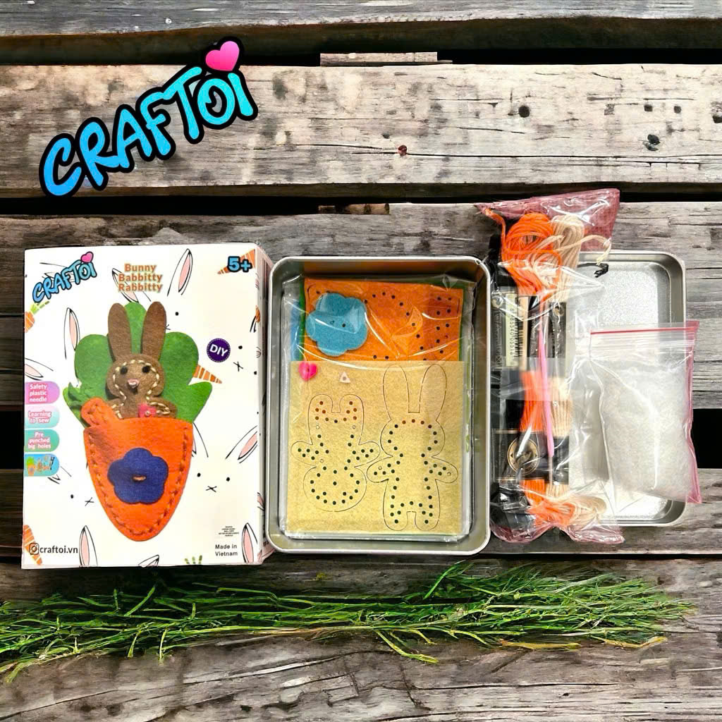 ✨KIM NHỰA Bộ Thủ Công Trẻ Tự Làm Thú Bông 5+ Bunny Babbitty Rabbitty Craftoi Felt Sewing DIY toy with safety needle