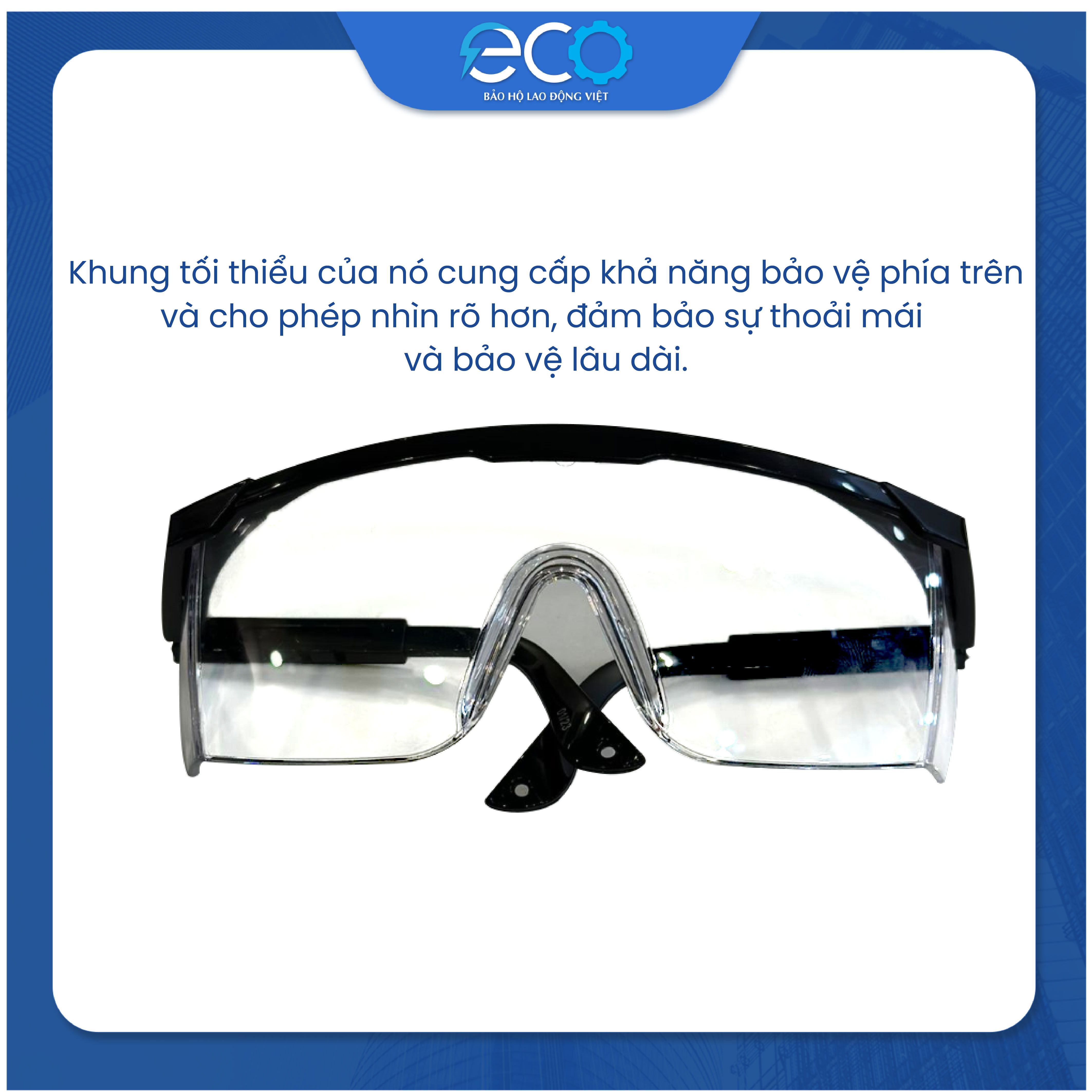 - Thương hiệu: INGCO - Sử dụng chất liệu nhựa dẻo có độ bền cao. - Tầm nhìn rộng - Thiết kế ôm trọn, bảo vệ mắt an toàn khi có vật lạ bay vào.