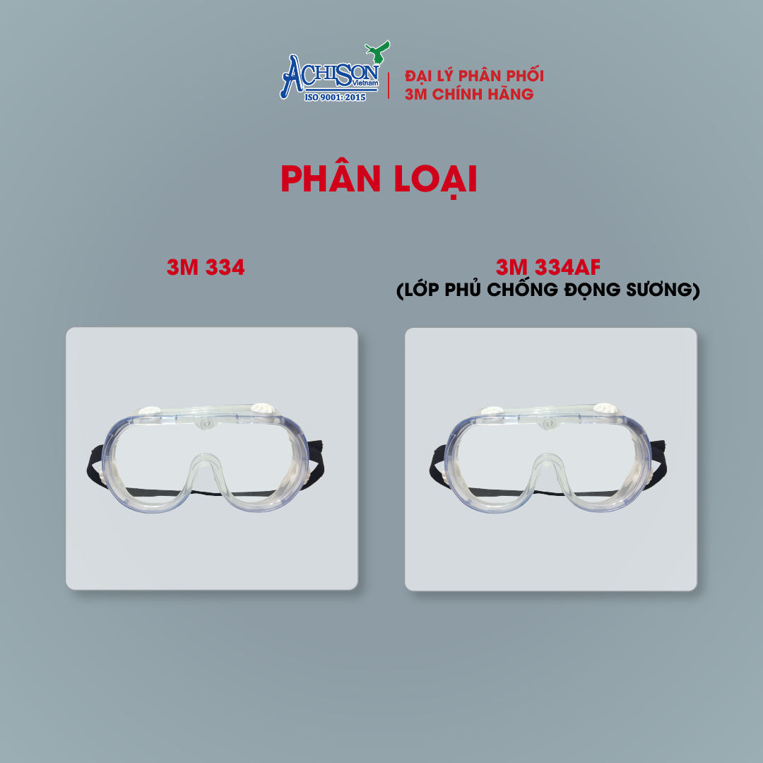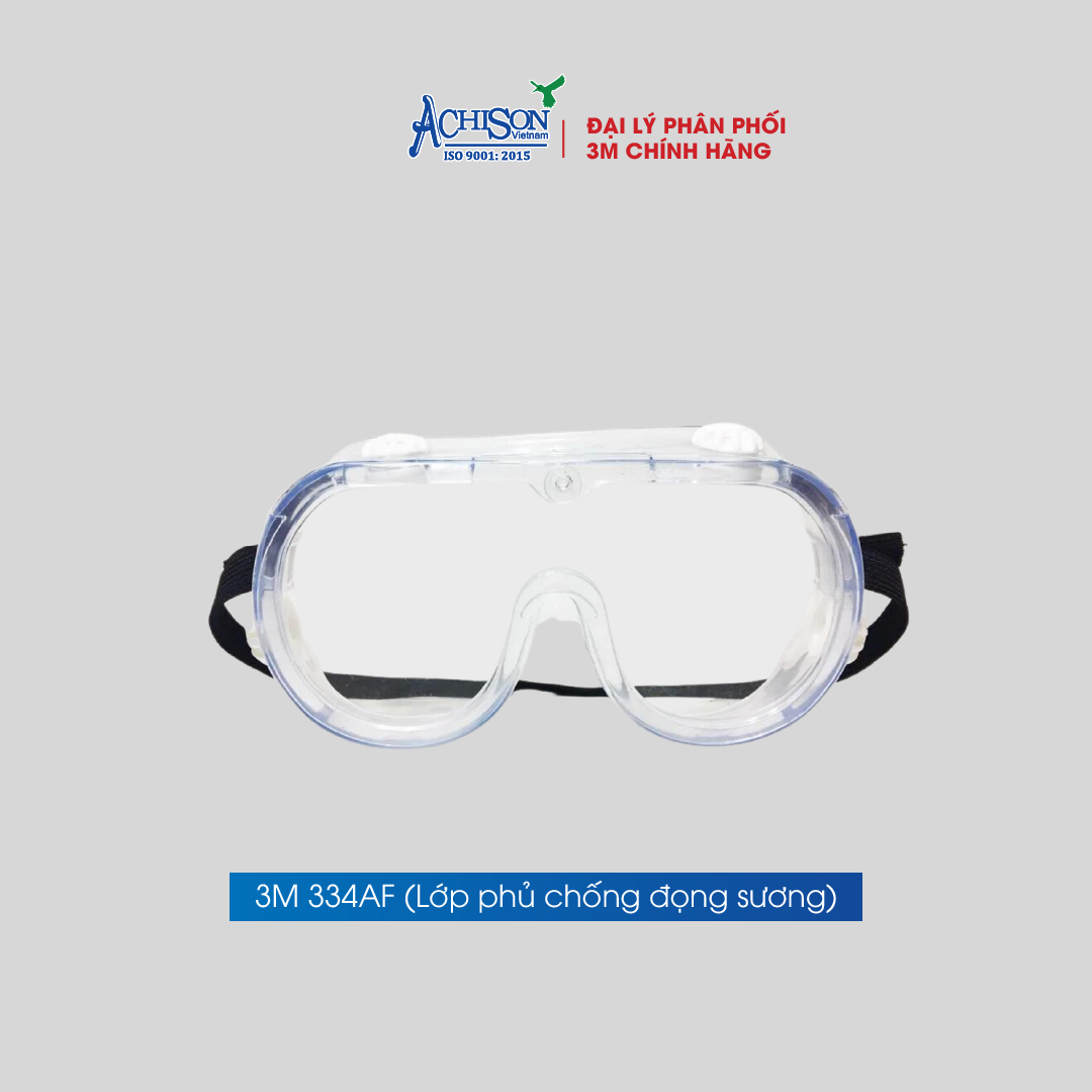 Kính bảo hộ chống hóa chất 3M 334AF Mắt kính chống đọng sương, chống tia UV, bảo vệ mắt