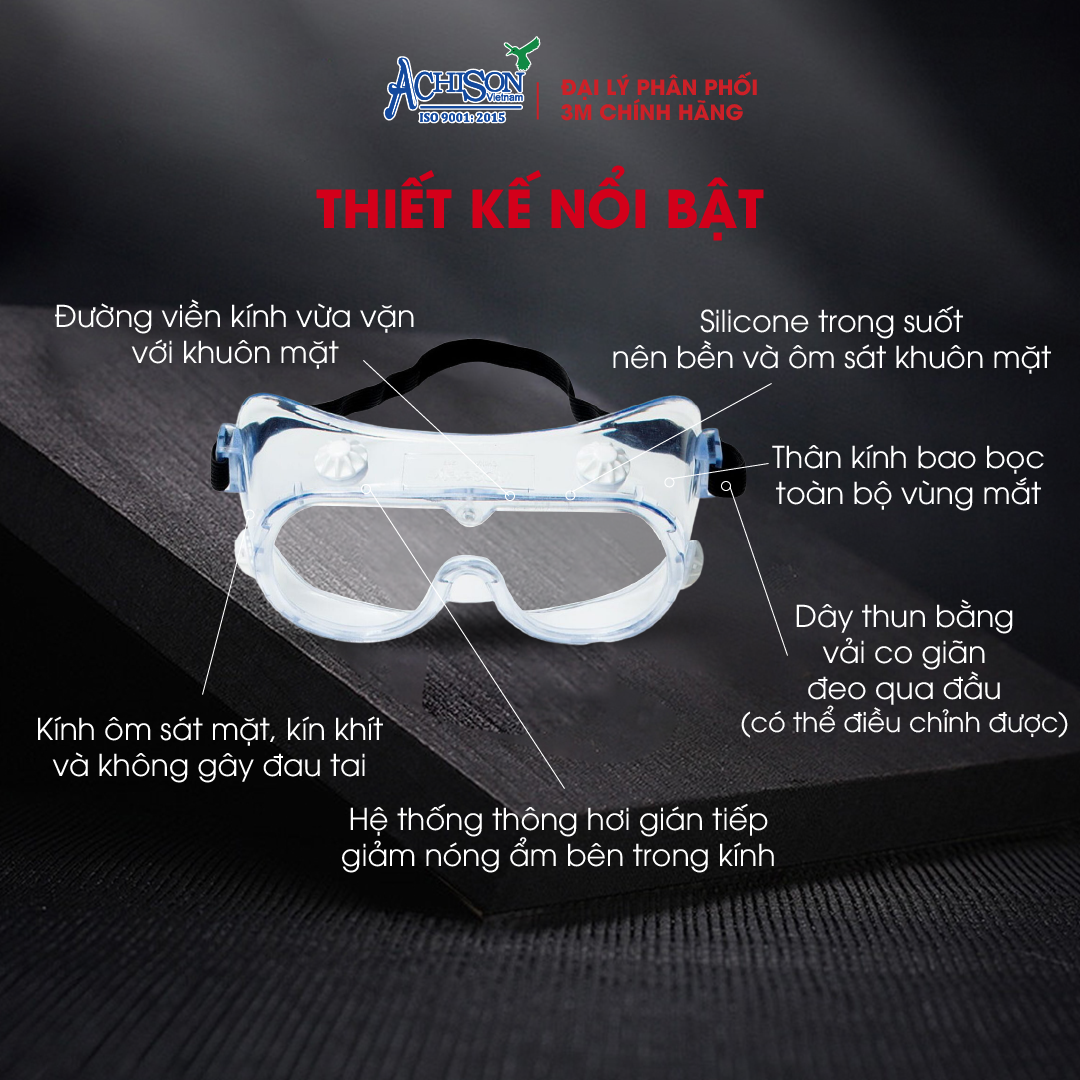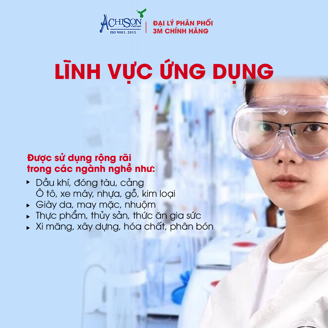 Kính bảo hộ lao động 3M 1621 là loại kính chống văng bắn giọt chất lỏng, bụi, hơi hóa chất nhẹ, rất phổ biến trong môi trường phòng thí nghiệm, cơ khí, y tế, sơn,