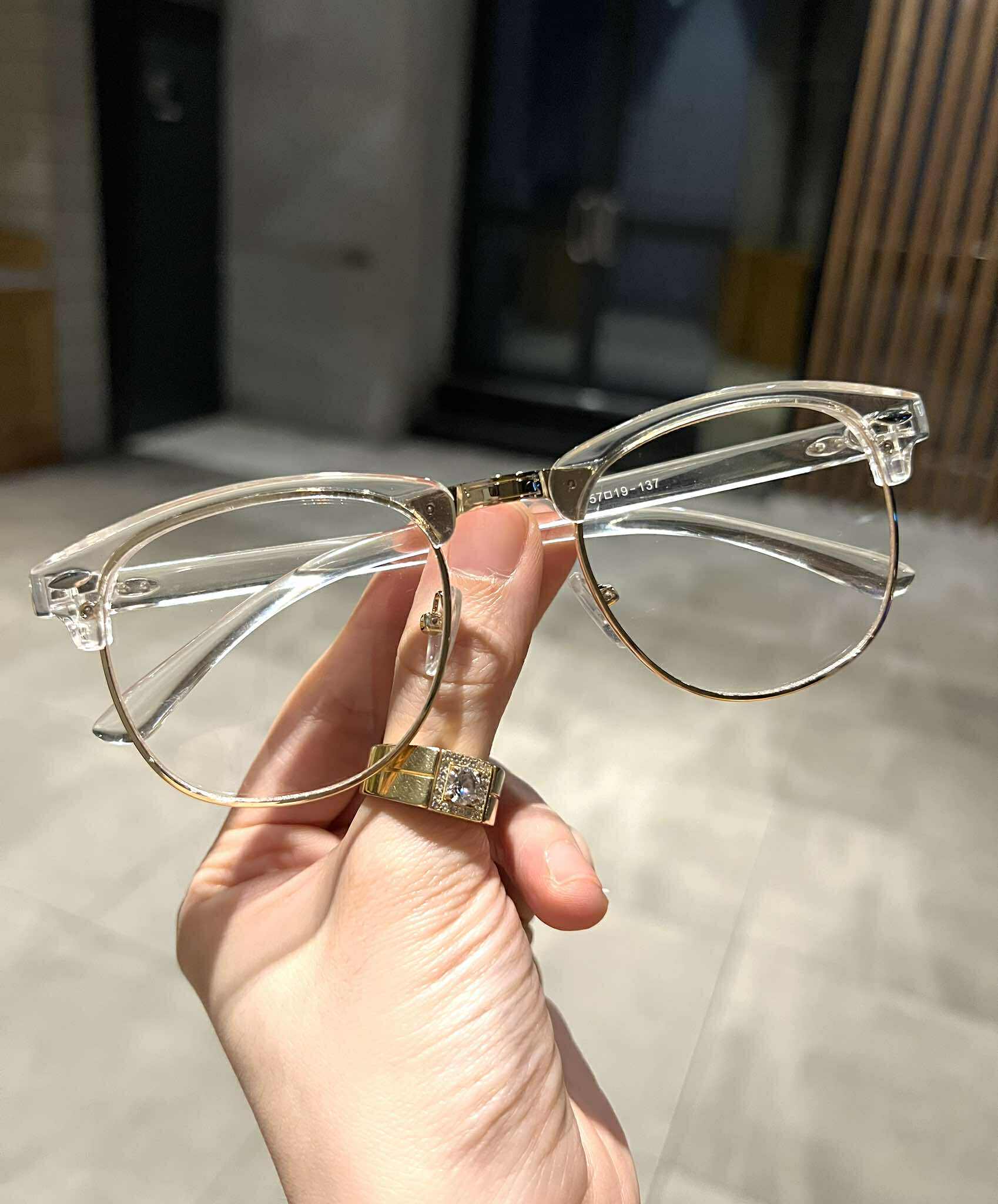 Kính Trong suốt dáng Club nửa viền unisex cho nam nữ - Giới tính: Nam và Nữ - Kiểu dáng: Freeform - Chất liệu: Nhựa - Tặng hộp đựng và khăn lau kèm theo -