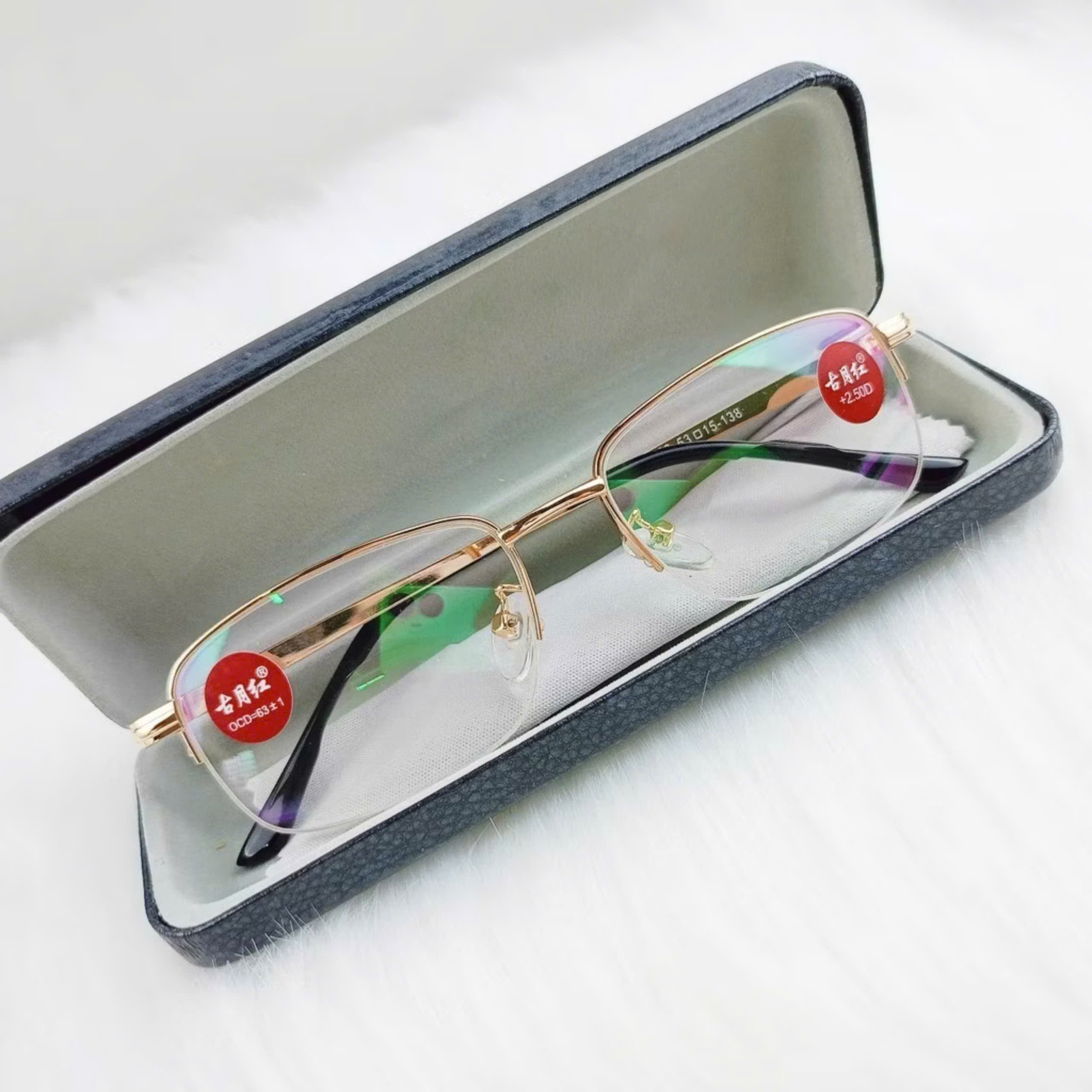 MÔ TẢ CHI TIẾT SẢN PHẨM: -tròng kính thủy tinh sản xuất tại đức - Form kính : vuông - Màu sắc: Vàng - độ từ +0.5- +4.0 - Gọng kiếng đường nét tinh xảo