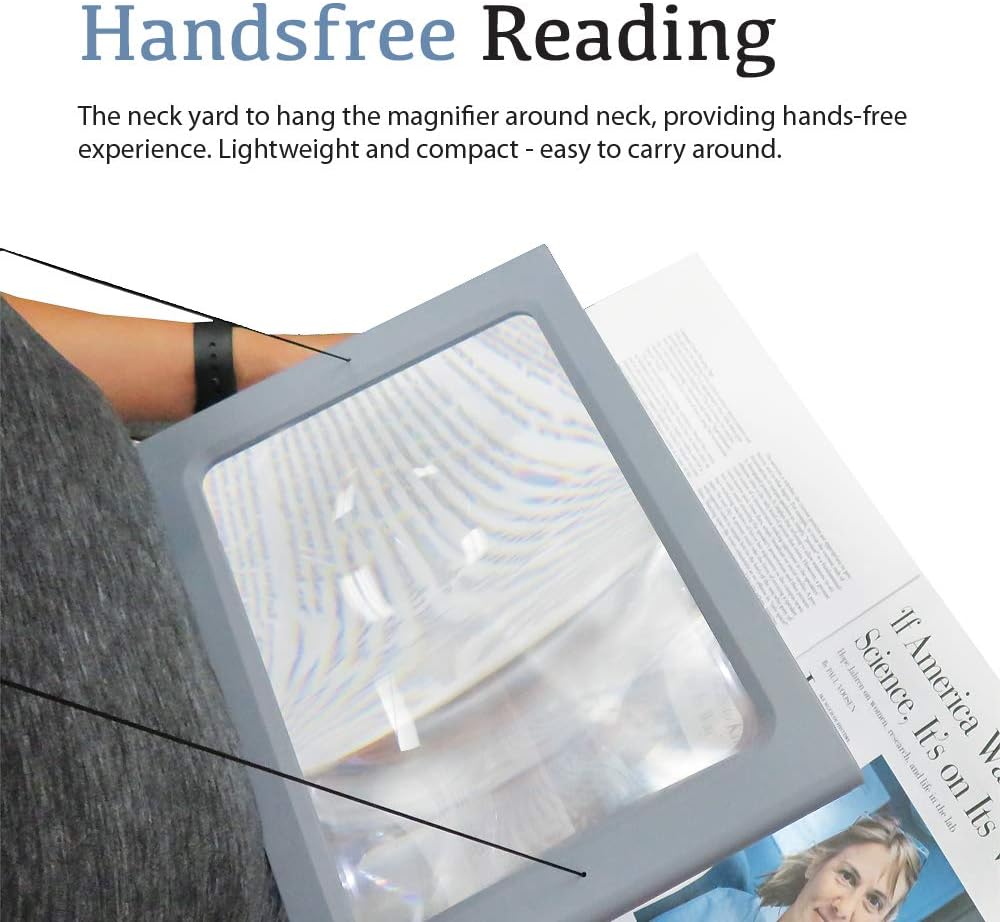 12 đèn LED TẮM SÁNG SIÊU SÁNG & ĐỌC TAY: 12 đèn LED tiết kiệm năng lượng được thiết kế để kéo dài hơn 10.000 giờ và đủ sáng để đọc trong điều kiện để bàn và dây đeo cổ để treo kính lúp quanh cổ, mang lại trải nghiệm rảnh tay . Nhẹ và nhỏ gọn - dễ dàng mang theo