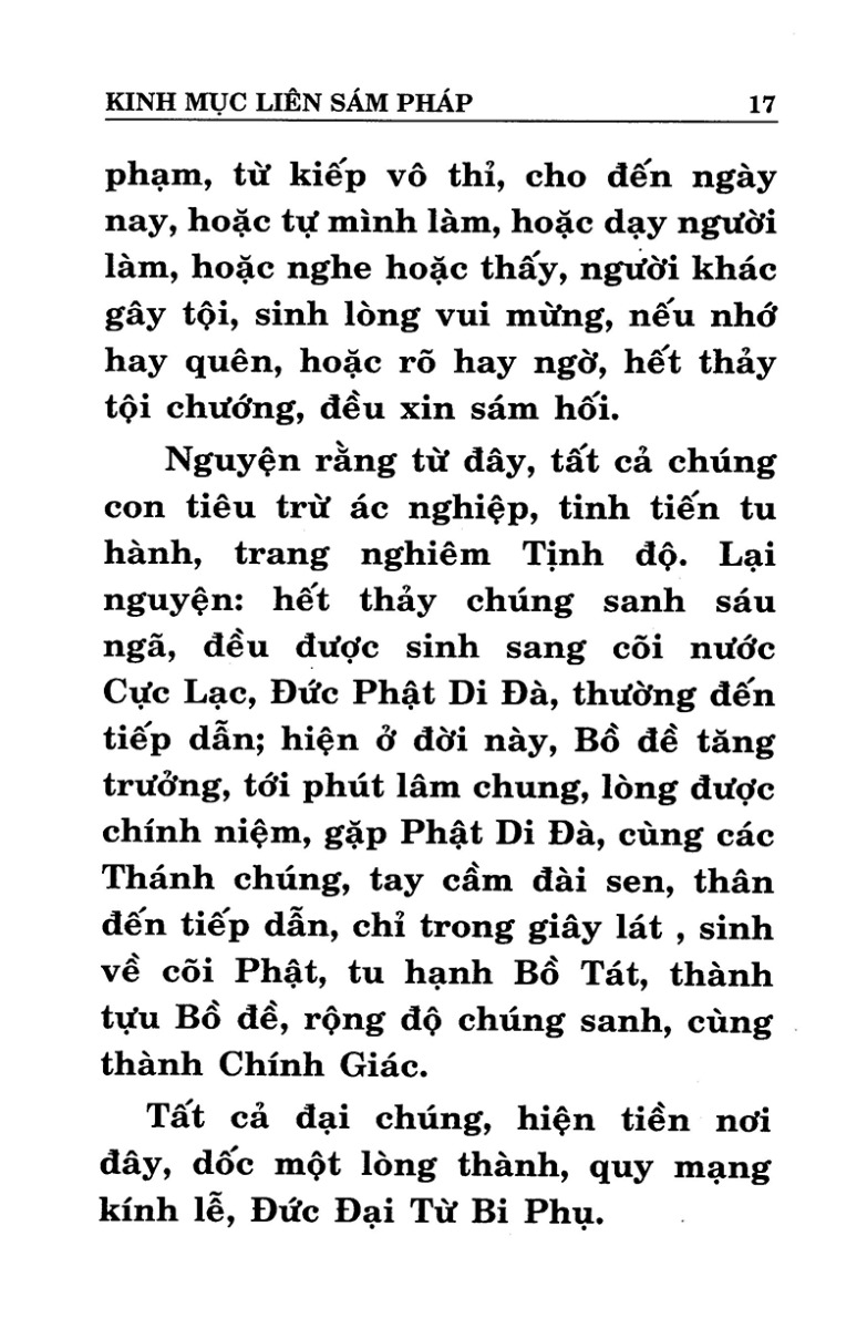 "Với Sám Pháp này; thật là cái kim chỉ nam cho người thời mạt pháp “tội trọng phúc khinh” nương vào đó để tu hành sám hối diệt tội; Sám Pháp này là con thuyền đưa người qua biển khổ sinh tử đến bờ giải thoát an vui, và Sám Pháp này cũng là ngọn đuốc tuệ soi sáng cho chúng ta vượt qua những con đường vô minh tội lỗi.
