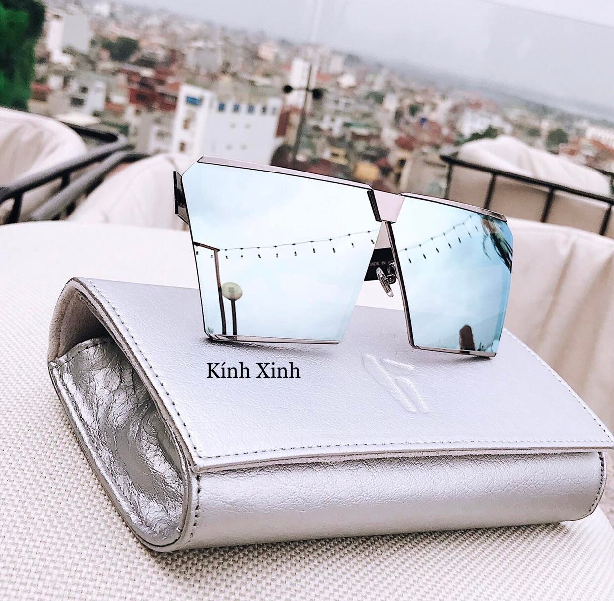 ✨Kính râm Thời Trang Mắt Vuông Kim Loại Dáng Form To Cho Nam và Nữ (Bạc Gương)