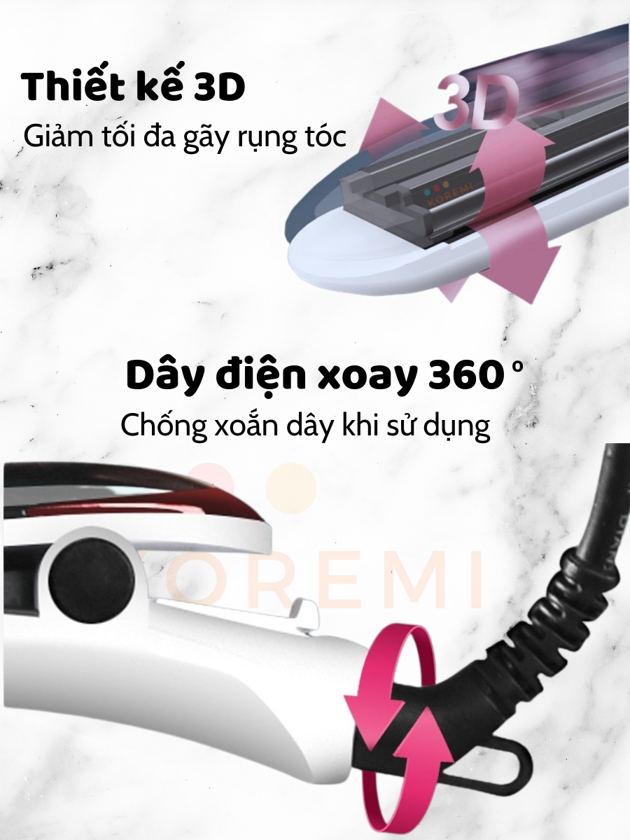 ✨KOREMI Máy uốn duỗi 3in1 Duỗi Thẳng, Uốn Xoăn, Làm Phồng Tóc X3 ion âm, Giúp tóc suôn mượt Hàng Chính Hãng