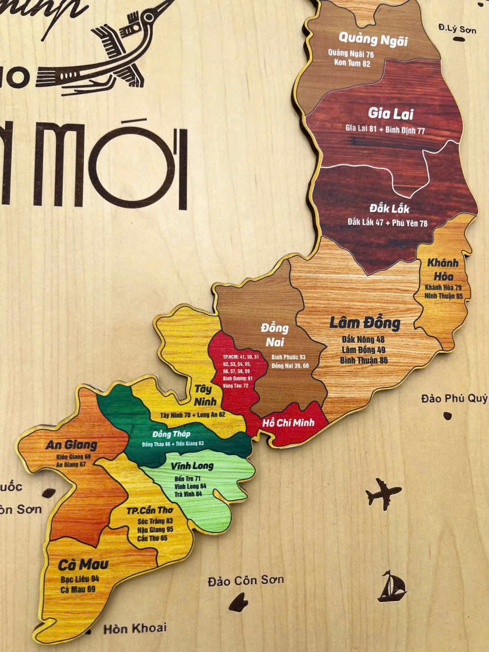 Bản đồ gỗ 34 tỉnh thành Việt Nam