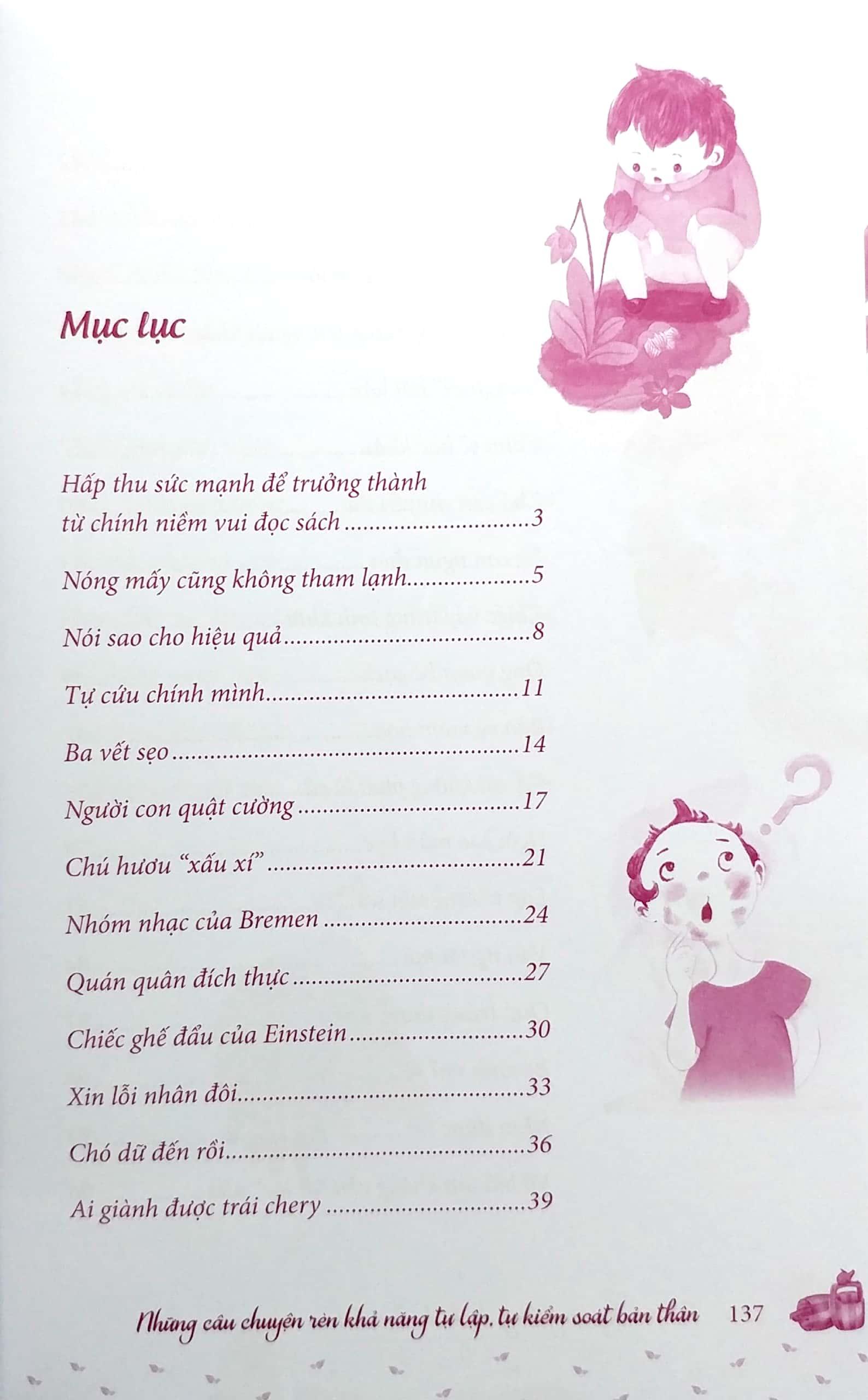 Mua tại TiktokĐây là một bộ sách được viết cho lứa tuổi học sinh tiểu học. Bộ sách được chia thành 6 chủ đề lớn, bao gồm những câu chuyện nhỏ đầy thú vị, có ý nghĩa sâu sắc, tràn đầy tình yêu thương và sức mạnh trưởng thành. Thông qua những câu chuyện này, các bé sẽ hiểu rõ hơn nguồn lực trí tuệ được gửi gắm trong đó để rồi có được những thu hoạch lớn lao trong tương lai.