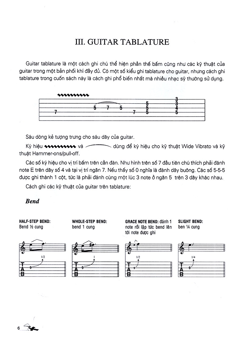 Cuốn sách giới thiệu khái niệm về đàn guitar. Sách hướng dẫn người học tập bấm các nốt tên 6 dây trên đàn. Ngoài ra, sách còn có một số bài tập nhạc lý đại