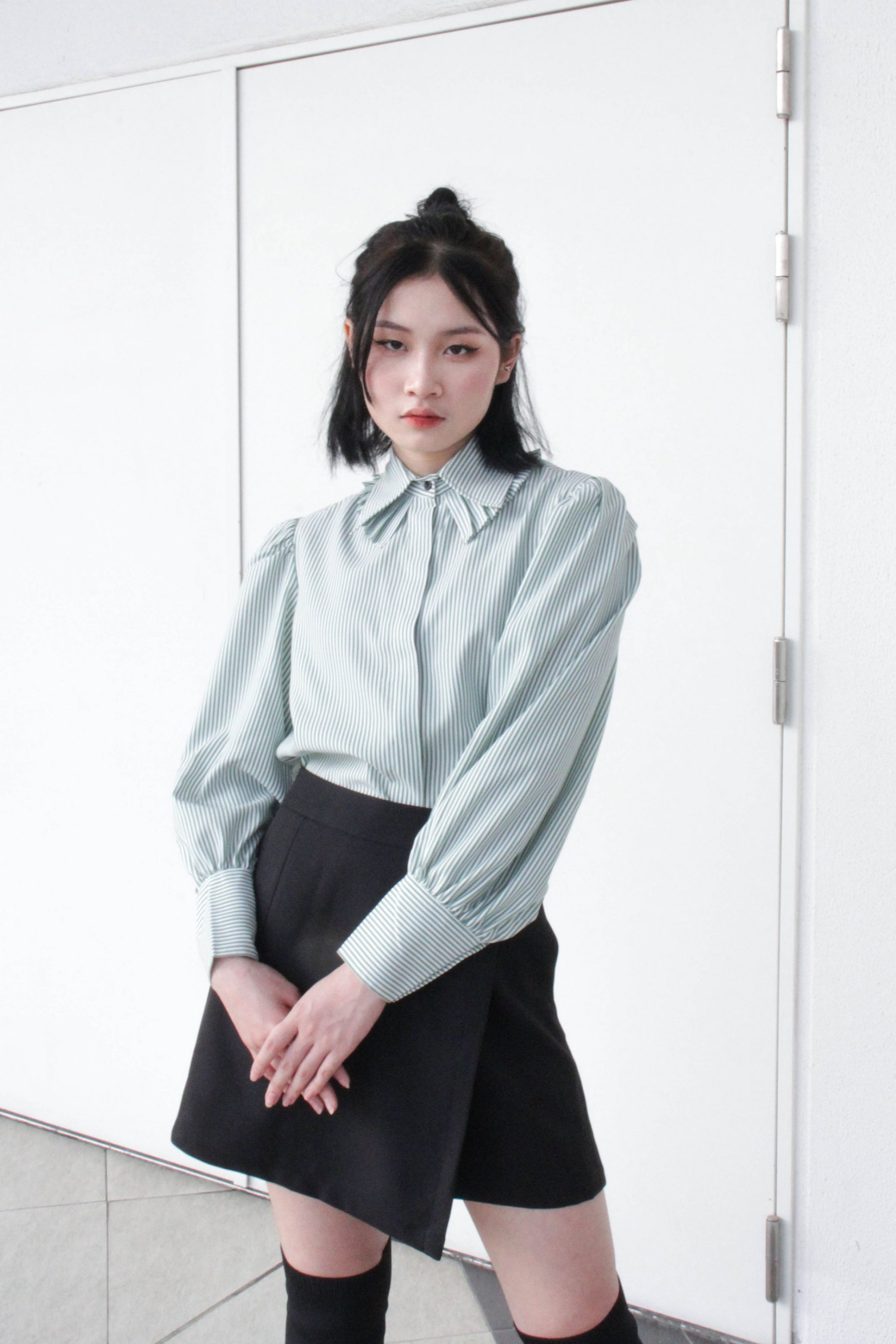 Sơ Mi Kẻ Sọc Tay Bồng – Nét Nữ Tính Chuẩn Công Sở