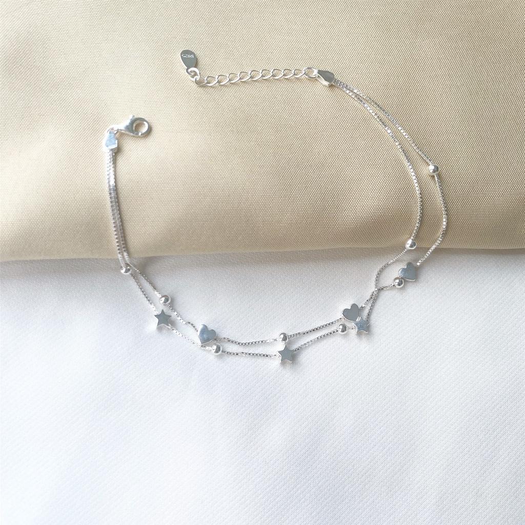 Lắc chân bạc 925 dây đôi gắn sao và bi xinh xắn nhẹ nhàng. Lắc chân mang phong cách Hàn Quốc thời trang, nữ tính nhưng thực sự là mẫu dành cho những cô nàng trendy.