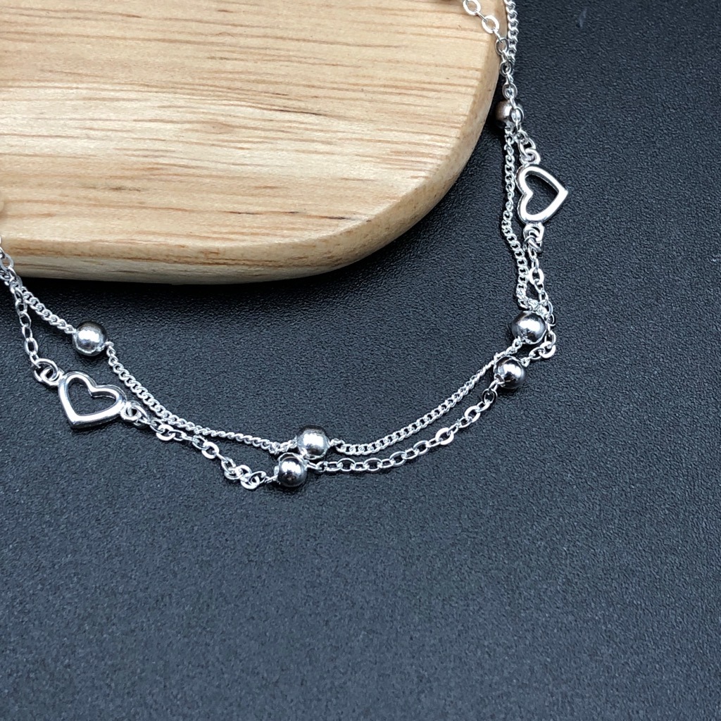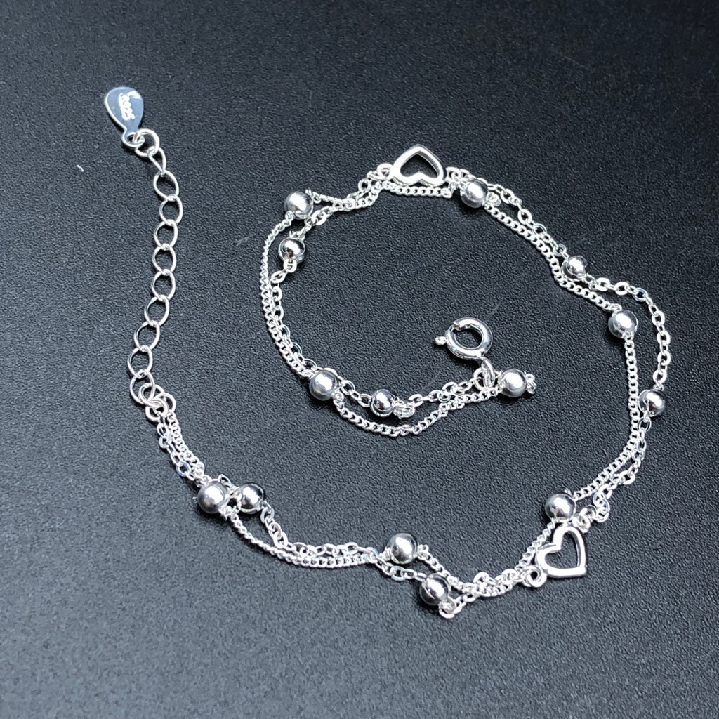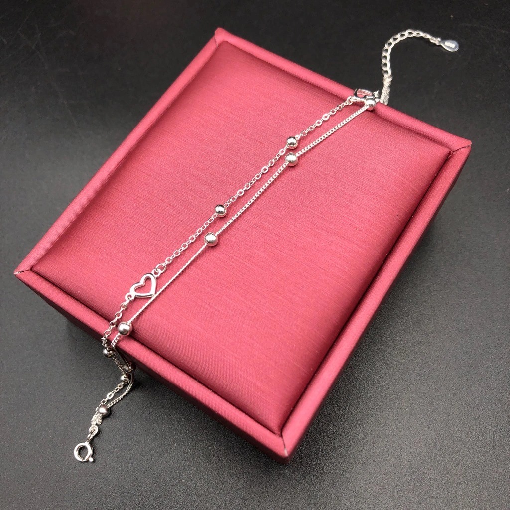 Lắc chân được chế tác từ bạc cao cấp S925 Lắc chân với thiết kế đơn giản bao gồm hai trái tim đính đá thể hiện tình cảm nồng nàn của người tặng và sự