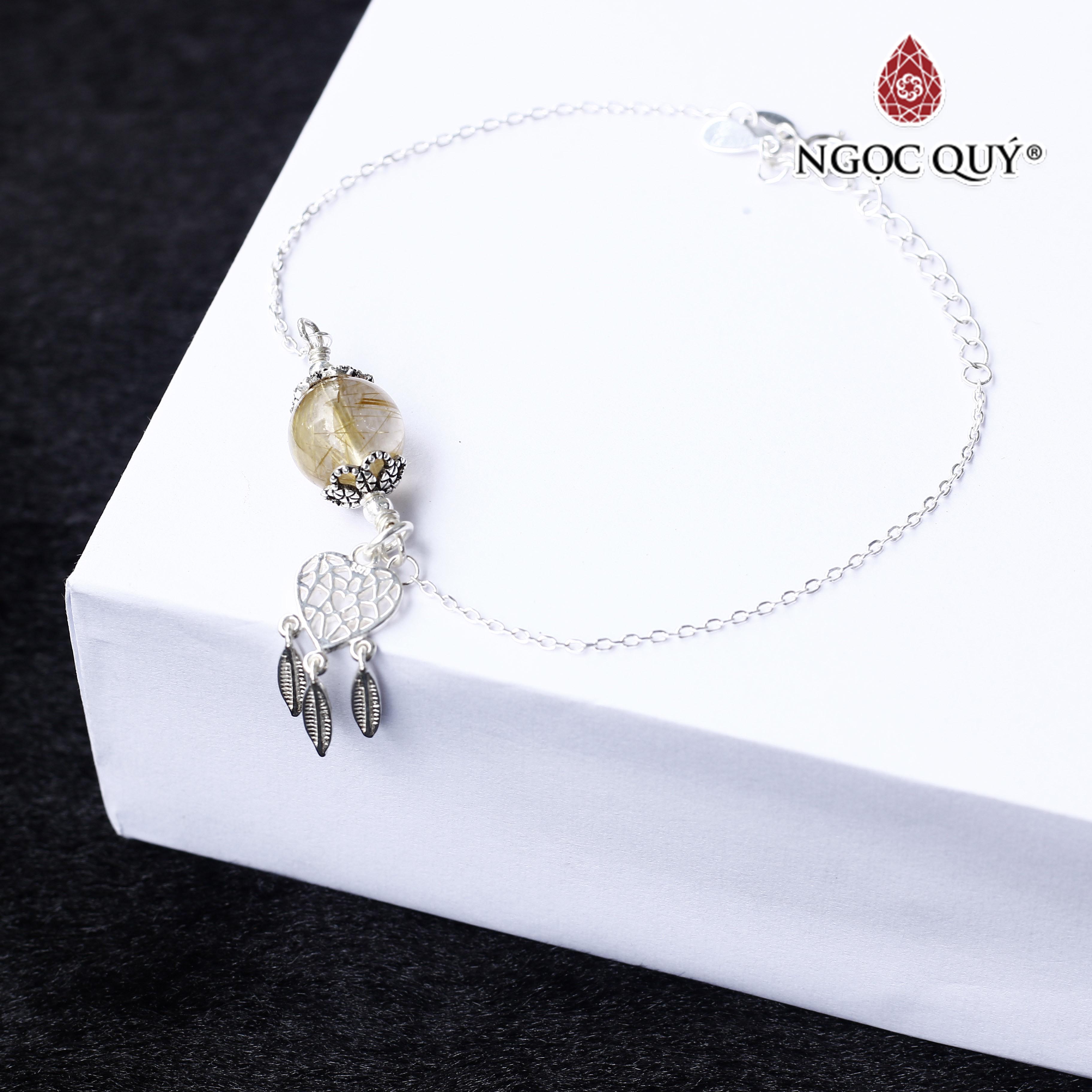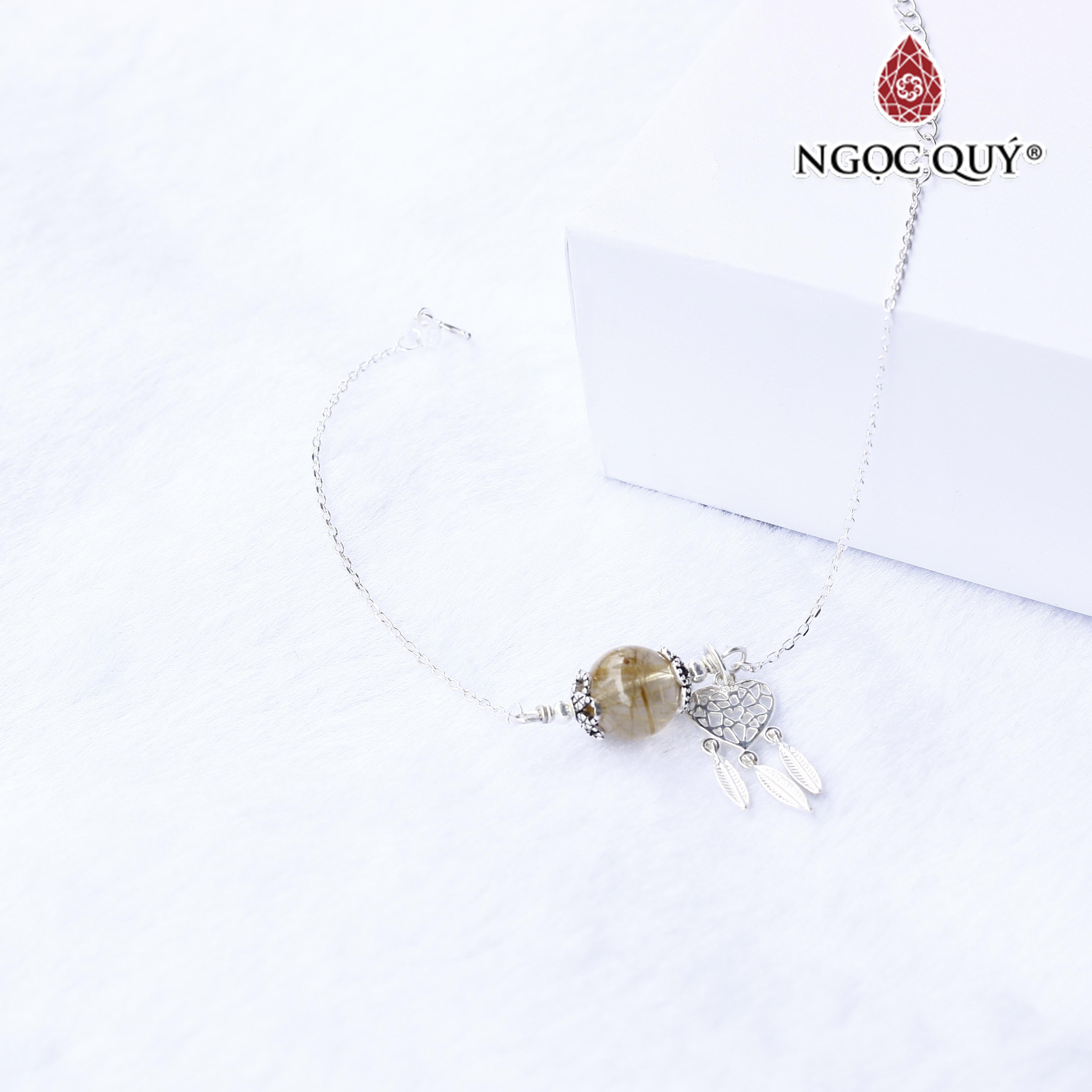 Lắc tay đá thạch anh tóc vàng hạt 10mm phối charm dream catcher hình trái tim