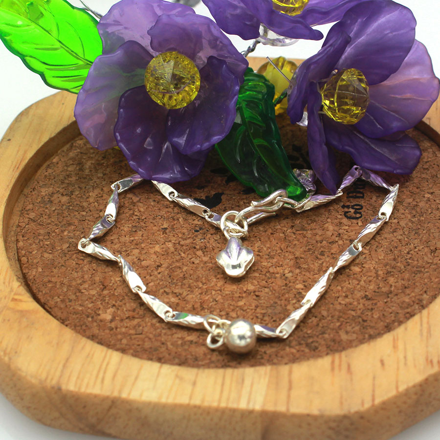 Là con gái, hẳn bạn luôn bị cuốn hút trước những bộ cánh thời trang và những đôi giày sành điệu. Tuy nhiên để làm hoàn hảo hình ảnh của mình trong mắt người đối diện, các bạn cần thêm những món phụ kiện bé bé xinh xinh để điểm tô cho vẻ ngoài thêm ấn tượng. Và hôm nay, S sẽ mang đến các bạn cơ hội sở hữu chiếc lắc tay rất dễ thương, được làm bằng bạc ta. Sản phẩm thích hợp với những bạn gái có phong cách dịu dàng, nữ tính.