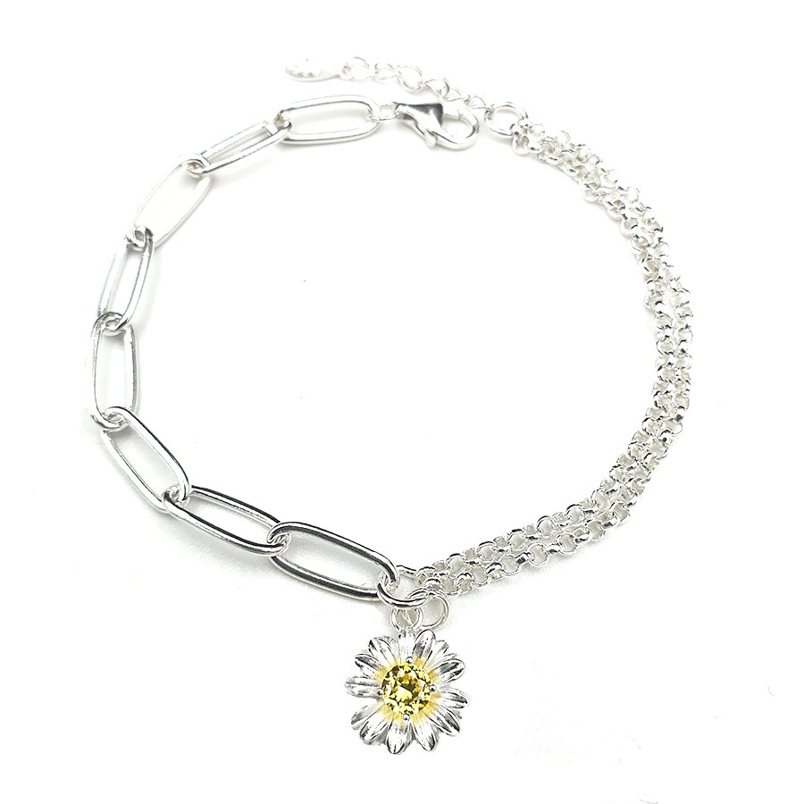 Lắc tay nữ LTU509 hoa cúc dây xích Bạc Hiểu Minh