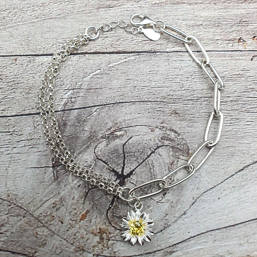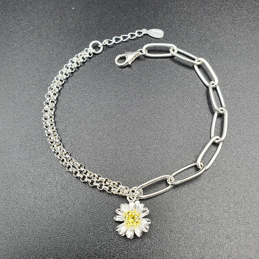 Lắc Tay Bạc 925 - Vòng Đeo Tay Nữ Cao Cấp Hoa Cúc Họa Mi - Shop Khăn Phụ Kiện - KhanPhuKien.com