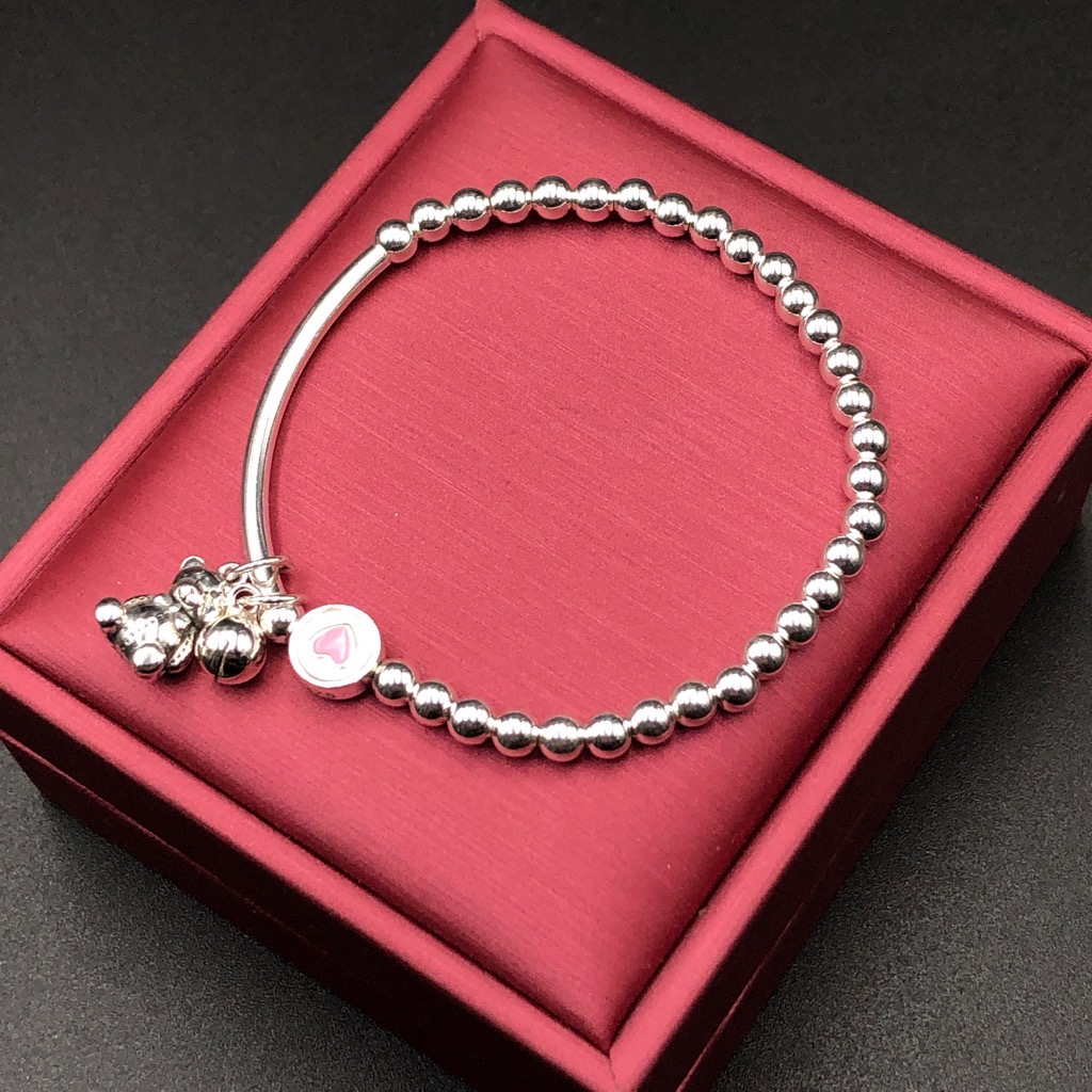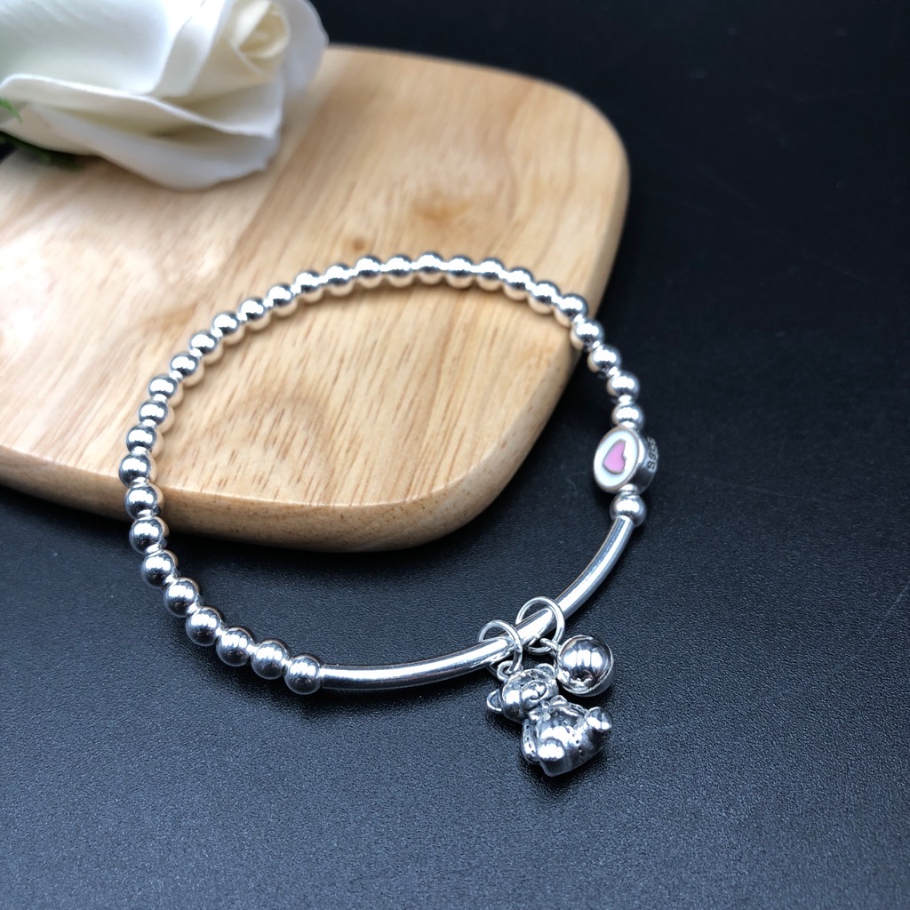 Lắc Tay Vòng Tay Nữ Bạc 925 Bi Trơn Mix Với Gấu Dễ Thương Bạc Hiểu Minh LTU574