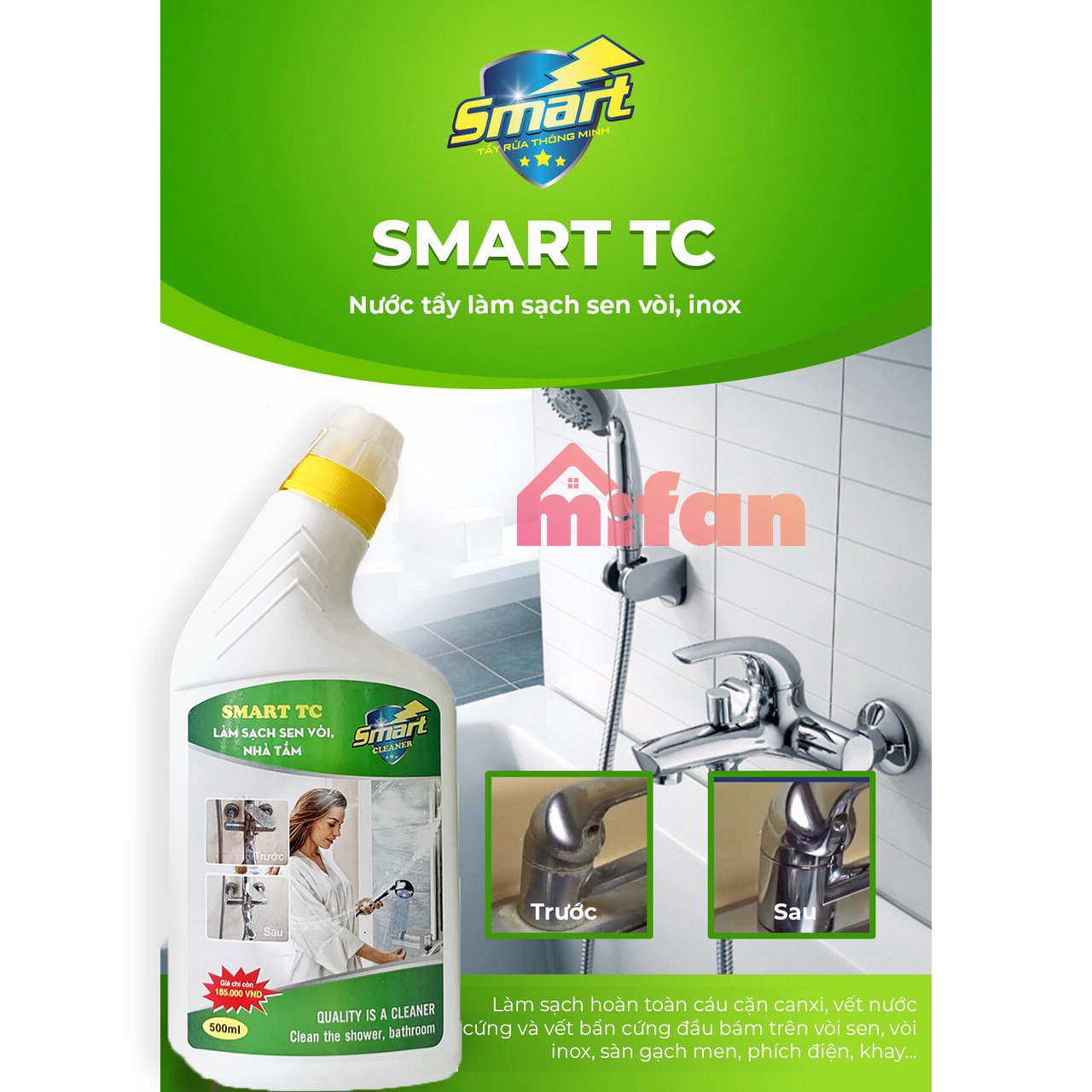 LÀM SẠCH SEN VÒI INOX - LOẠI CỰC MẠNH - CHAI LỚN 300ML VÀ 500ML - PH N PHỐI CHÍNH HÃNG SMART TC