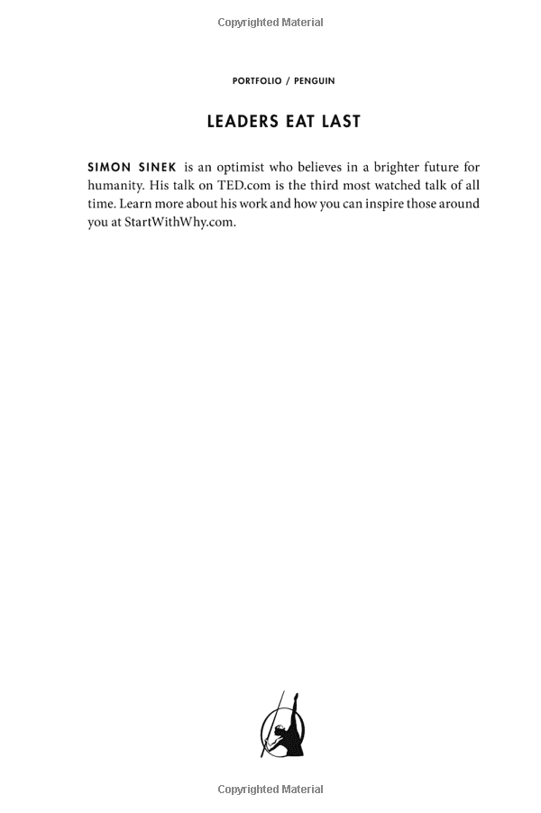 As in Start with Why, Sinek illustrates his ideas with fascinating true stories, from the military to manufacturing, from government to investment banking. He shows that leaders who are willing to eat last are rewarded with deeply loyal colleagues who will stop at nothing to advance their vision. It's amazing how well it works.