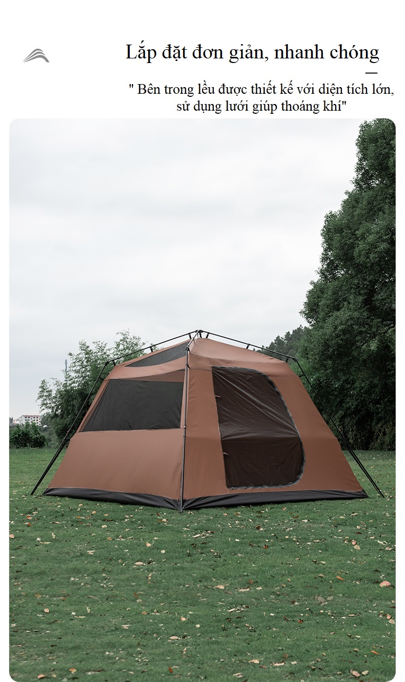 – Kích thước lều lớn, không gian rộng rãi thoải mái cho 6-8 người sử dụng.