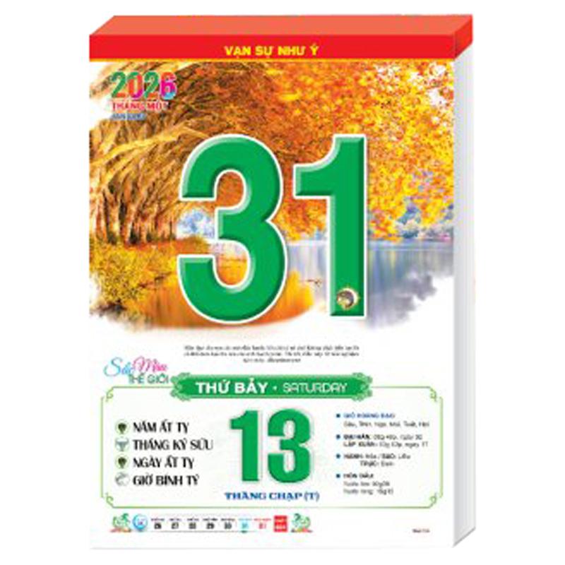 - Quyển Bloc lịch 2026 dùng gắn vào các loại bìa lịch treo tường, thay thế Bloc năm cũ. * QUY CÁCH BLOC LỊCH: - Chất lượng in công nghệ hiện đại, sắc nét, in