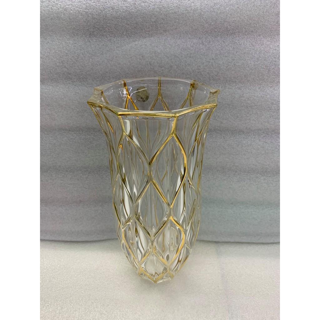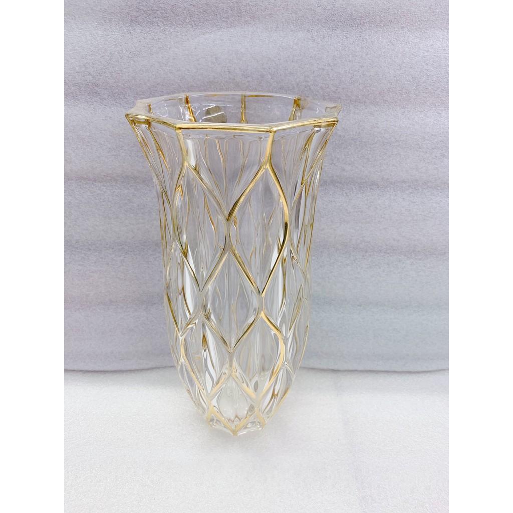 ✨Lọ cắm hoa thủy tinh 30cm mắt trám viền vàng