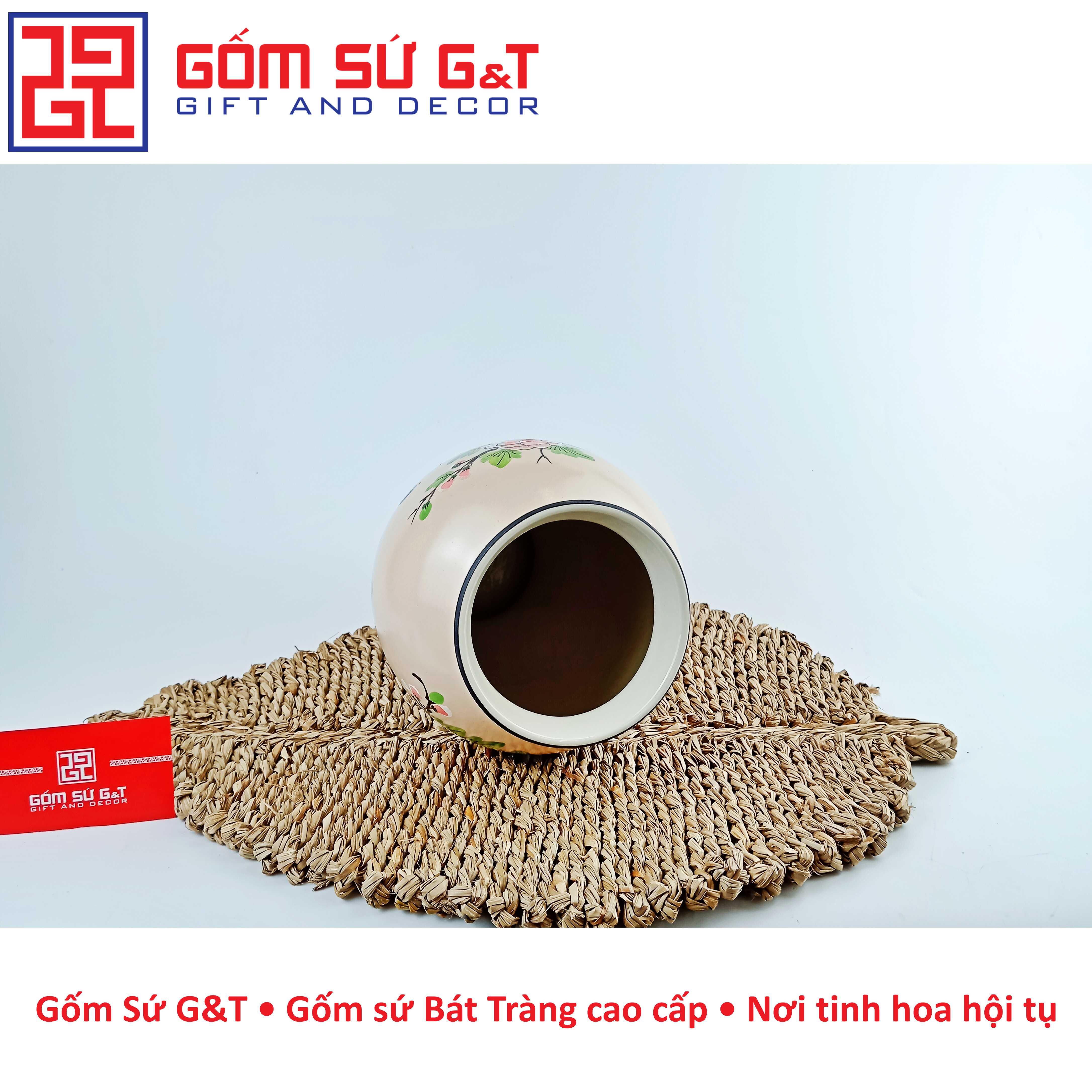 Bình hút tài lộc phong thủy họa tiết tứ cảnh (bốn mùa ) vẽ vàng, gốm sứ Bát Tràng cao cấp (H26 x D24cm) - Trong quan niệm phong thủy, bình hút tài lộc phong