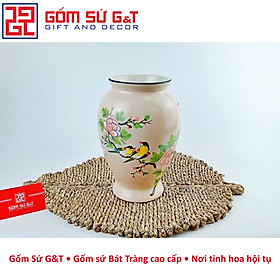 Sứ Bát Tràng, với nguồn gốc từ tự nhiên, không chỉ đảm bảo an toàn cho sức khỏe mà còn mang lại độ bền cao cho sản phẩm. Lọ hoa dáng đùi dế vẽ chim hoa phù dung được làm từ sứ Bát Tràng sẽ trở thành điểm nhấn lâu dài trong không gian sống của bạn.