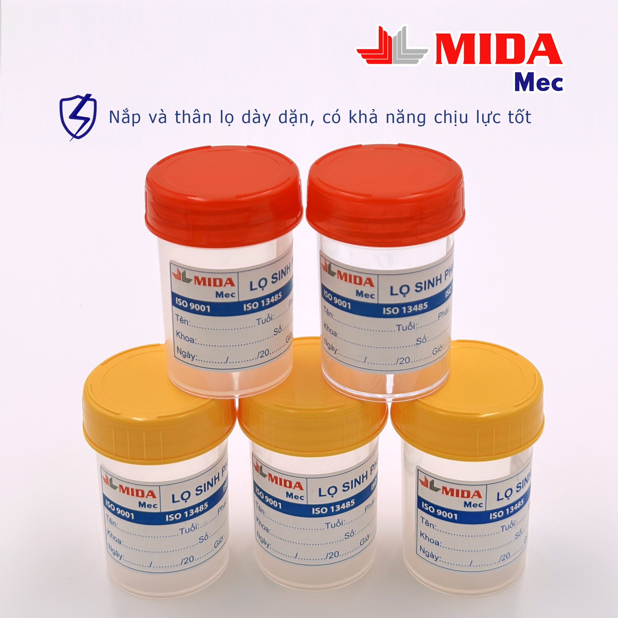 - Lọ sinh phẩm MidaMec dùng dể đựng mẫu sinh phẩm bệnh nhân, sử dụng cho xét nghiệm mẫu nước tiểu.