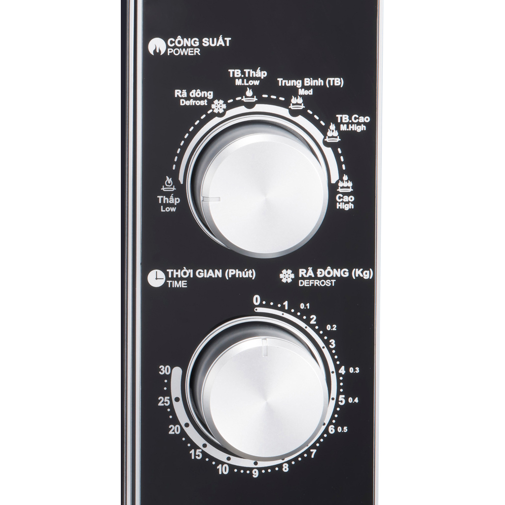 Tính năng nổi bật : – Bảng điều khiển cơ học dễ dàng sử dụng – Thiết kế sang trọng hiện đại. THÔNG SỐ KỸ THUẬT Điện Áp 220v-50hz Đường Kính Đĩa 24,4cm Trọng lượng khoảng 10,3 kg Công Suất Đầu Ra (vi sóng) 700W Công Suất Đầu Vào(vi sóng) 1100W Kích thước bề ngoài (cm) 47 x 38 x 28.5 Dung Tích Lò Vi Sóng 20L