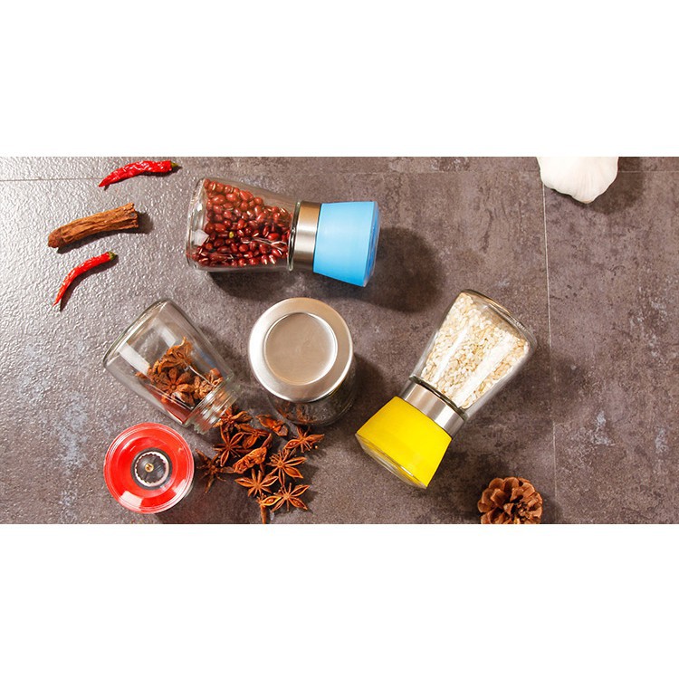 Máy Xay Tiêu Cầm Tay Thủy Tinh Dụng Cụ Cối Xay Tiêu Nắp Inox Vặn Tay