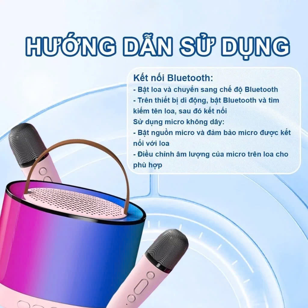 2 Mic Karaoke Kèm Theo: Loa đi kèm với 2 micro không dây, giúp bạn dễ dàng hát karaoke cùng bạn bè hoặc gia đình. Với khả năng thu âm chuẩn, mic giúp giọng hát của bạn được phát ra rõ ràng, sống động, mang lại trải nghiệm karaoke tuyệt vời.