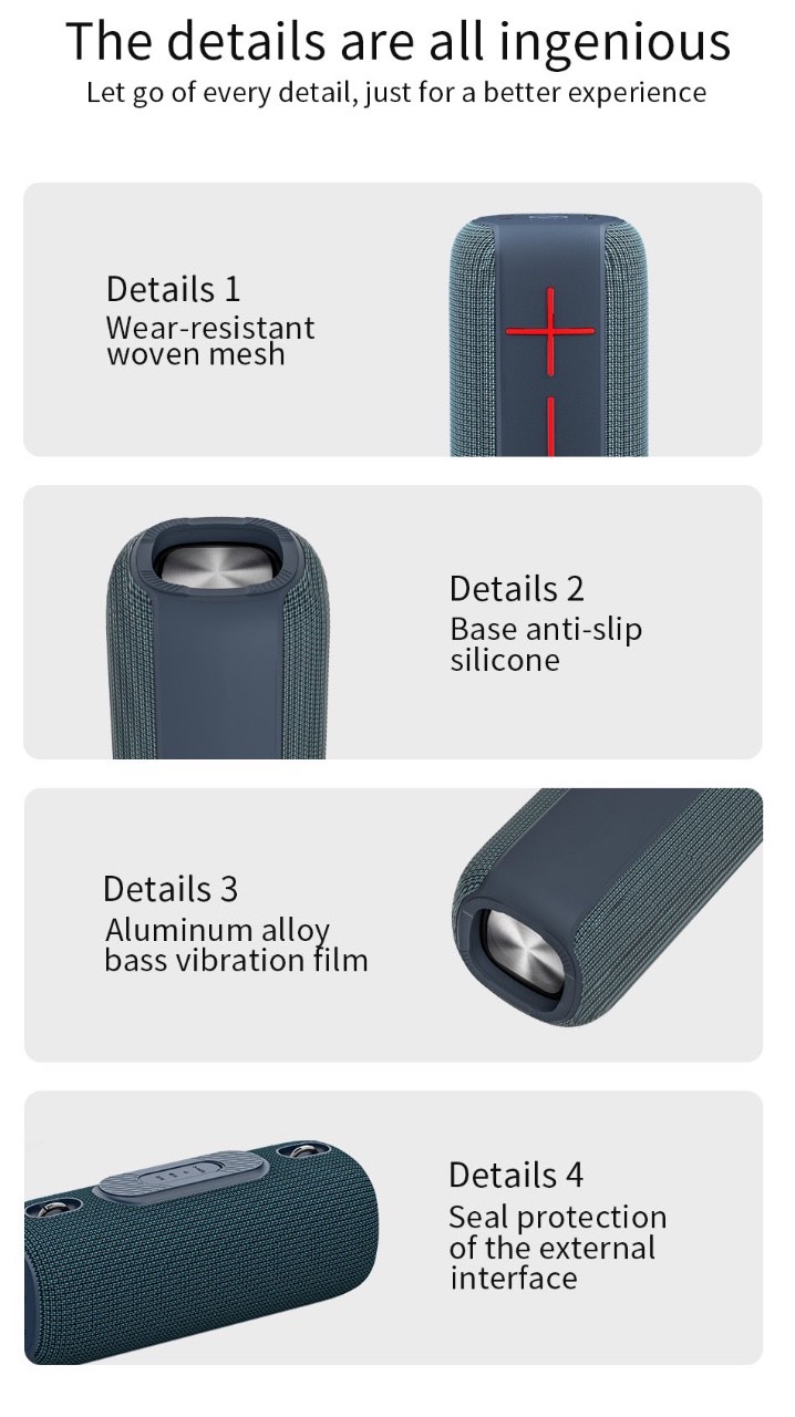 - Âm thanh trong trẻo, dải bass ấm, tái hiện tốt nhiều thể loại nhạc - Kết nối Bluetooth ổn định, ghép nối nhanh với điện thoại, laptop, tablet - Thiết kế nhỏ gọn, dễ