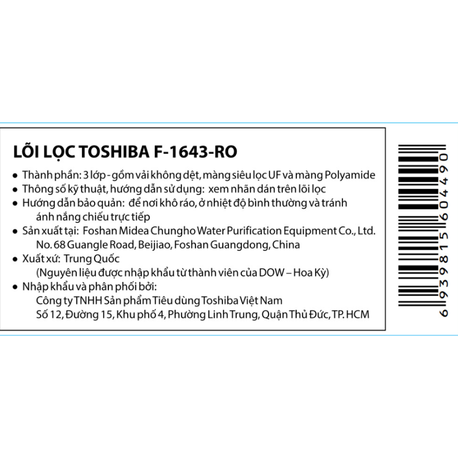 ✨LÕI LỌC TOSHIBA F-1643-RO - hàng chính hãng