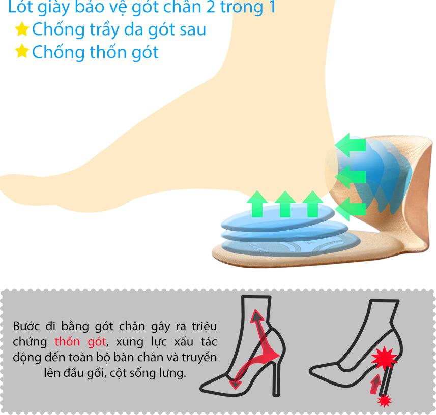 Mô tả sản phẩm Giày cao gót thật quyến rũ và cũng thật "Đau Đớn" đối với đôi bàn chân. Không ít trường hợp bị trầy da chảy máu, chai sần da gót sau, thốn