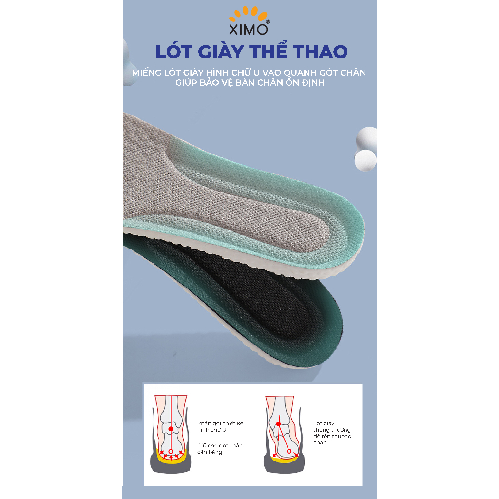 Lót giày thể thao cao su non EVA êm ái, giảm tác động lực vào lòng bàn chân, thấm hút mồ hôi tốt XIMO LGTT28