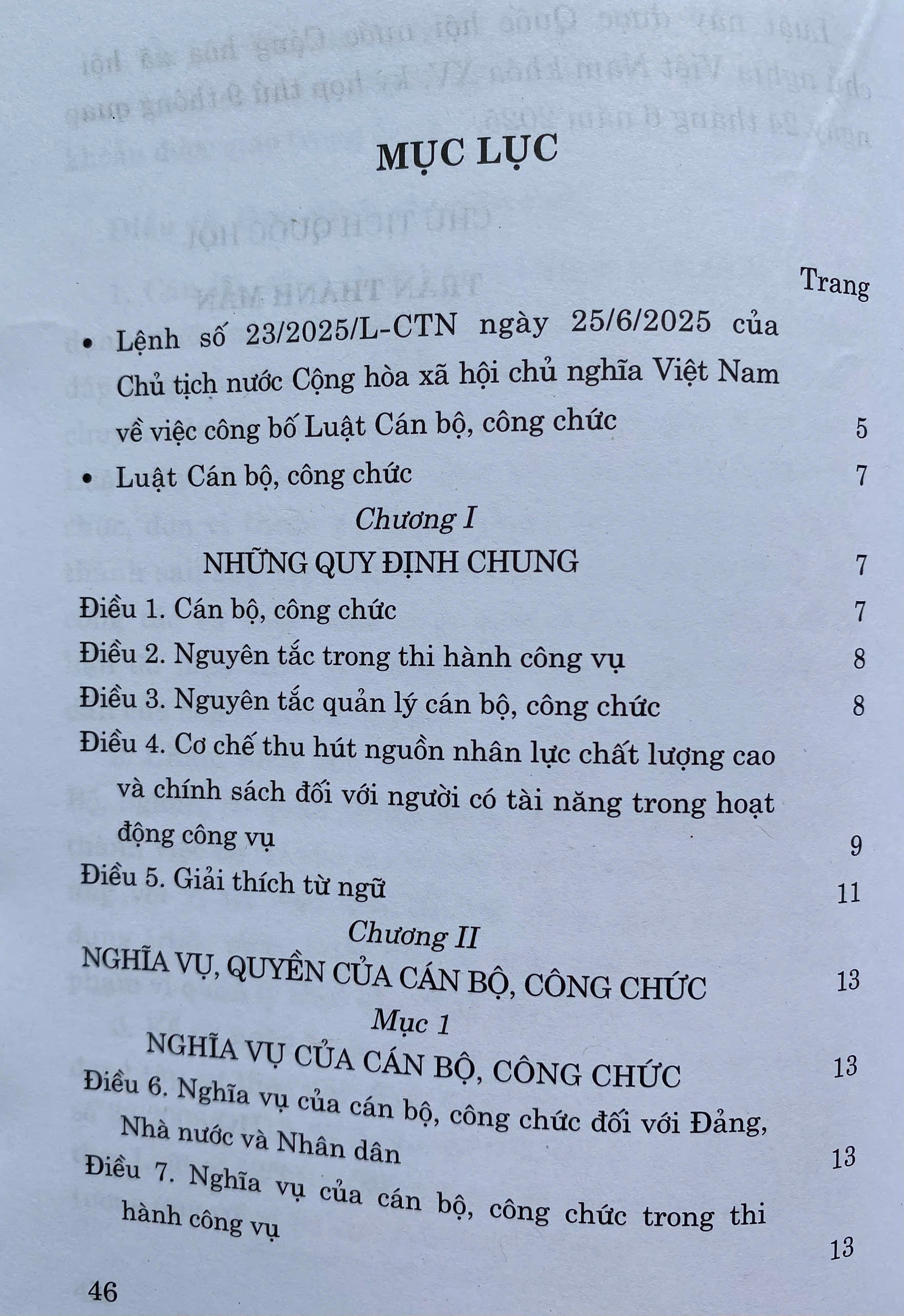 Luật Cán Bộ, Công Chức số 80/2025/QH15 đã được Quốc Hội khoá XV, kỳ họp thứ 9 thông qua ngày 24-06-2025 . Luật gồm có 7 Chương, 45 Điều. Luật có hiệu lực áp dụng từ ngày 01-07-2025.