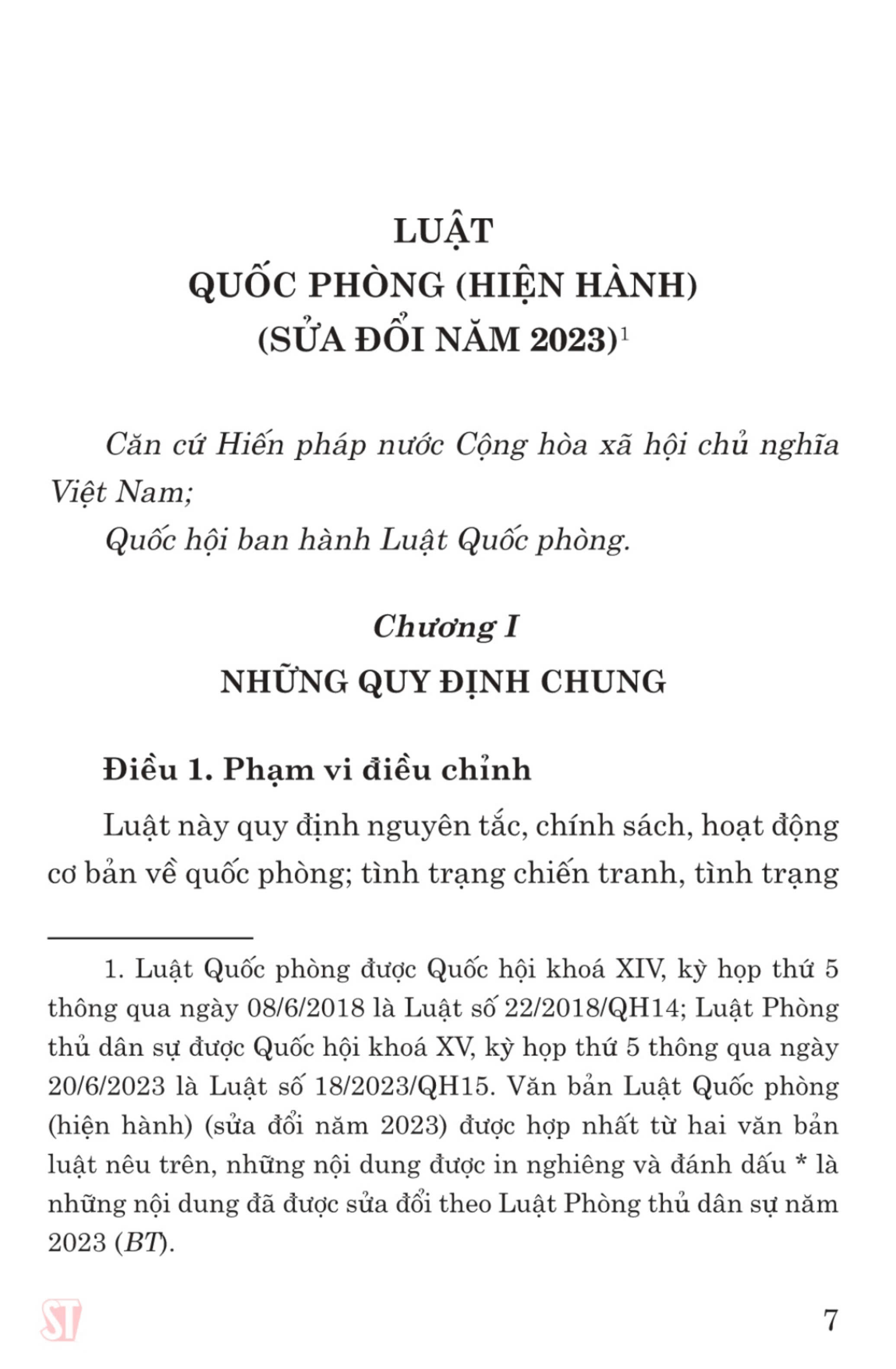 Nội dung cuốn sách Luật Quốc phòng (hiện hành) (sửa đổi năm 2023) là văn bản được hợp nhất giữa Luật Quốc phòng năm 2018 và phần nội dung được sửa đổi, bổ sung của Luật Phòng thủ dân sự năm 2023, tạo thuận tiện cho bạn đọc trong việc nghiên cứu, tìm hiểu và áp dụng pháp luật.