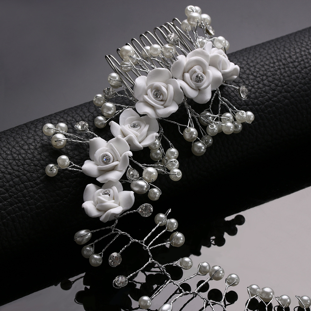 ✨Lược cài tóc hoa trắng trang điểm cô dâu, dạ tiệc