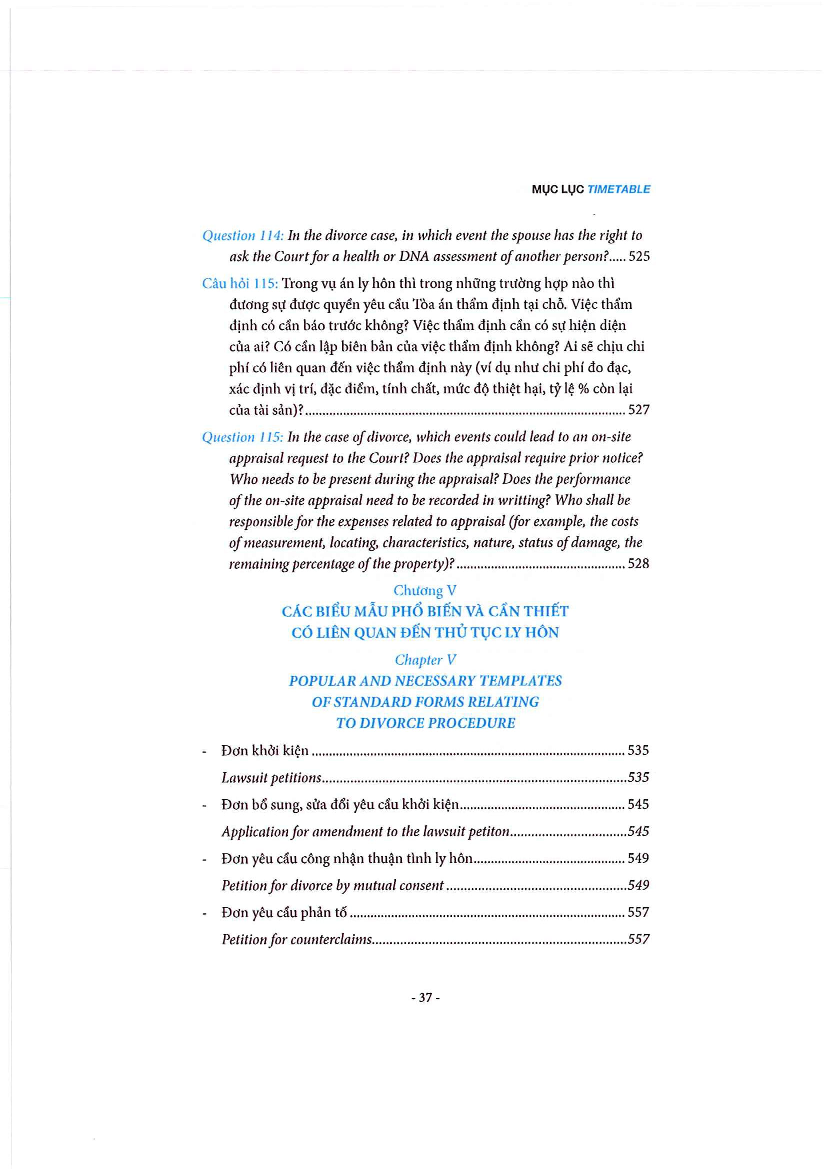 • Các biểu mẫu liên quan đến thủ tục ly hôn được trình bày dưới dạng song ngữ Việt Anh giúp độc giả thuận tiện tham chiếu và áp dụng phù hợp.
