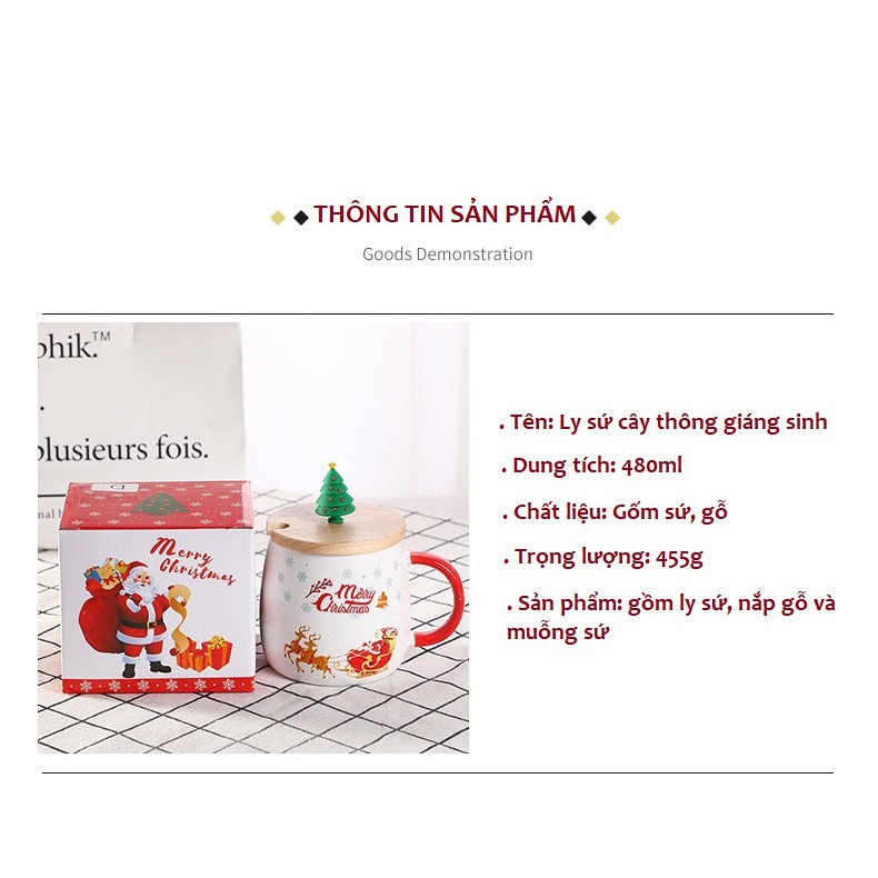✨Ly sứ noel kèm muỗng sứ nắp gỗ quà tặng ý nghĩa cho giáng sinh