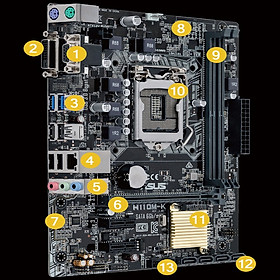 THÔNG SỐ KỸ THUẬT Hãng sản xuất ASUS Model H110M-K Chipset Intel H110 CPU hỗ trợ Intel Socket 1151 cho Thế hệ thứ 7/thứ 6 Core i7/Core i5/Core i3/Pentium/Celeron Bộ vi xử lý Hỗ trợ Intel 14