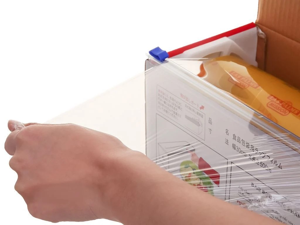 Màng bọc thực phẩm thông thường có nhược điểm phải xé và hay bị dính vào nhau khó bọc Màng bọc thực phẩm mới ra đồ khắc phục nhượ điểm này bọc có sẵn phần