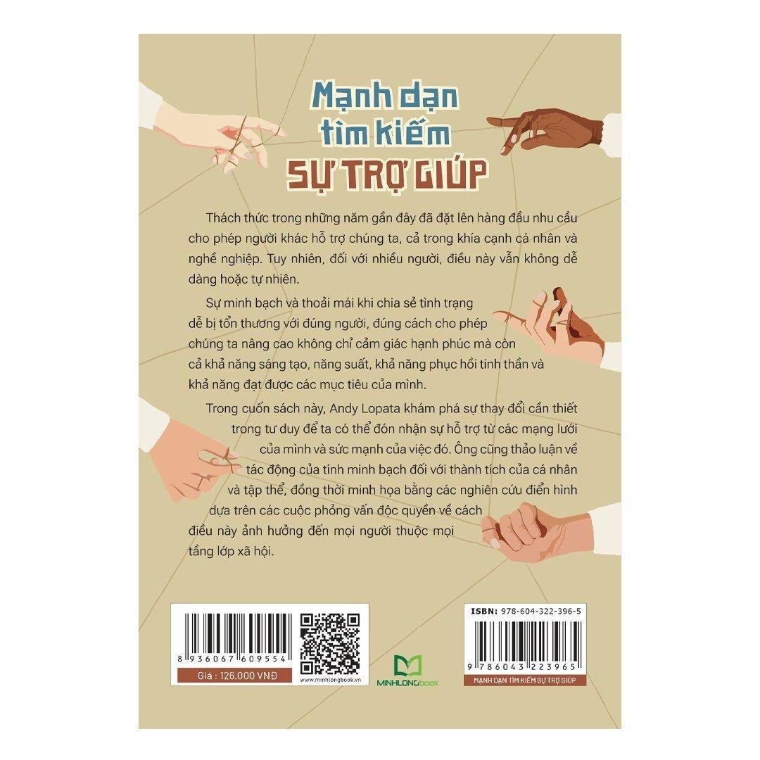 "Có quá nhiều thứ ngăn cản chúng ta nhờ trợ giúp. Điều mà chúng ta luôn không nhận ra là mọi người đều muốn giúp đỡ, họ thích giúp đỡ và họ sẽ cảm thấy tổn thương nếu chúng ta không để họ giúp đỡ mình." Điều gì đang kìm hãm chúng ta? Đại đa số chúng ta được nuôi dạy với niềm tin rằng chúng ta cần phải biết mọi câu trả lời, tự lập tìm lấy các giải pháp và tỏ ra thật sự ổn thỏa. Sự trỗi dậy của mạng xã hội, của văn hóa "selfie" trên các nền tảng Instagram và Snapchat cũng góp phần củng cố niềm tin đó, thúc đẩy nỗi ám ảnh phải tạo ra vẻ ngoài hoàn hảo và một cuộc sống tuyệt hảo cho những người đang theo dõi trực tuyến của chúng ta thấy. "Nhu cầu có vẻ ngoài ổn thỏa có thể thường xuyên ngăn cản chúng ta chia sẻ. Chúng ta muốn mọi người nghĩ về mình với những điều tốt đẹp nhất, và nhu cầu này quan trọng hơn khả năng nhận được sự hỗ trợ hay lời khuyên nhủ, những điều hữu ích có thể làm thay đổi tình cảnh của chúng ta." Cuốn sách này giúp bạn phá tan những ngộ nhận! Hẳn nhiều người hiện giờ đã sẵn sàng chứng kiến những ngộ nhận này bị phá vỡ và tạo ra một quan điểm toàn cầu mới. Một quan điểm ở đó con người không chỉ hoàn toàn nhất trí với cách sống cởi mở, chân thành và không ngại thể hiện cả khía cạnh dễ bị tổn thương của mình, mà còn khuyến khích quan điểm sống này một cách tích cực. "Bạn không cần phải lúc nào cũng tích cực." Việc chia sẻ là hoàn toàn bình thường, bên cạnh đó, lúc nào cũng độc lập và tự túc lại là cách làm lợi bất cập hại. Giả bộ rằng mình luôn biết mọi câu trả lời chẳng hề giúp ích được cho ai. Nó làm tổn hại tinh thần và lòng tự tin của bạn; nghĩa là bạn lặp lại những sai lầm mà người khác đã mắc phải và đều rút ra kinh nghiệm rồi; sau đó nó kéo theo tình trạng kém hiệu quả mà người tổn hại chính là bạn và mọi người quanh bạn. Tính dễ bị tổn thương không cần phải được đóng khung như một dấu hiệu của sự yếu kém. Việc nói rằng "Tôi không biết" không có nghĩa là bạn không phải là một người có thành tích cao siêu, một người xuất sắc hay đầy tham vọng. Đó là một sức mạnh, và thực tế thì tính khiêm nhường đang ngày càng trở nên quan trọng với tư cách là một kĩ năng trong kinh doanh. Có gì trong cuốn sách Mạnh Dạn Tìm Kiếm Sự Trợ Giúp? Sự minh bạch và thoải mái khi chia sẻ tình trạng dễ bị tổn thương với đúng người, đúng cách cho phép chúng ta nâng cao không chỉ cảm giác hạnh phúc mà còn cả khả năng sáng tạo, năng suất, khả năng phục hồi tinh thần và khả năng đạt được các mục tiêu của mình. Trong cuốn sách này, tác giả Andy Lopata khám phá sự thay đổi cần thiết trong tư duy để ta có thể đón nhận sự hỗ trợ từ các mạng lưới của mình và sức mạnh của việc đó. Ông cũng thảo luận về tác động của tính minh bạch đối với thành tích của cá nhân và tập thể, đồng thời minh họa bằng các nghiên cứu điển hình dựa trên các cuộc phỏng vấn độc quyền về cách điều này ảnh hưởng đến mọi người thuộc tầng lớp xã hội.