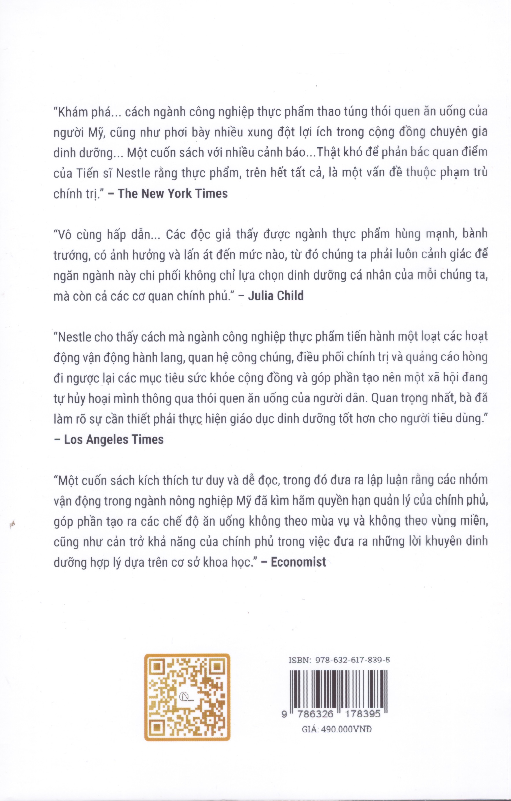Trong cuốn sách gây chấn động giới học thuật và ngành công nghiệp thực phẩm, chuyên gia dinh dưỡng hàng đầu thế giới – Marion Nestle – vạch trần những sự thật trần trụi đằng sau các khuyến nghị ăn uống, các “kim tự tháp thực phẩm”, và cả khái niệm “lành mạnh” vốn đang bị thao túng bởi quyền lực chính trị, lợi nhuận và truyền thông.