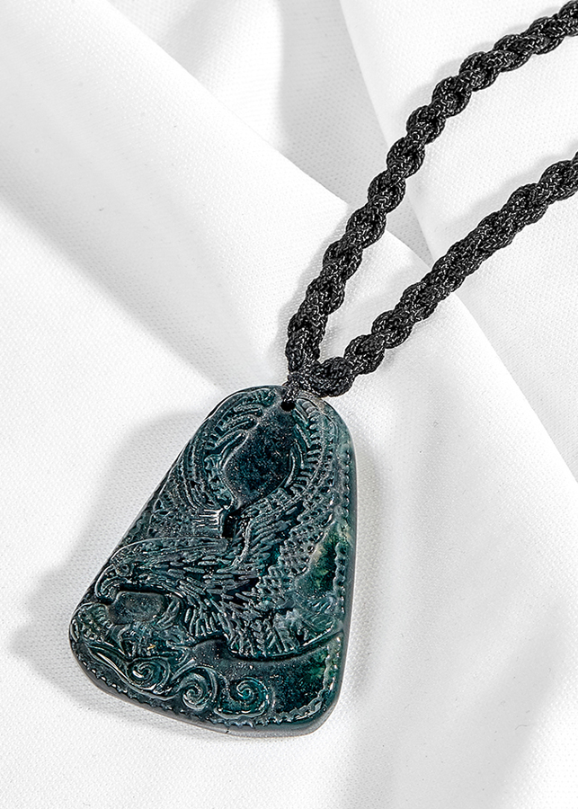 Mặt dây chuyền đại bàng đá chalcedony xanh đen Ngọc Quý Gemstones