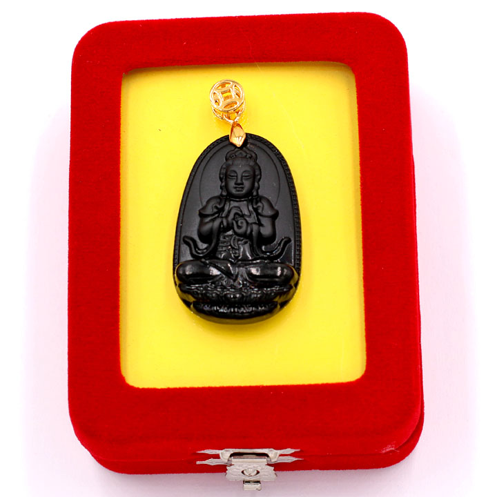 ✨Mặt dây chuyền Như lai Đại nhật đen 3.6 cm kèm hộp nhung