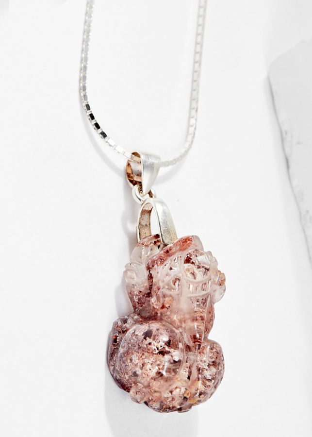 Mặt Dây Chuyền Phong Thủy Đá Thạch Anh Ưu Linh Rêu Tỳ Hưu Mệnh Hỏa, Thổ